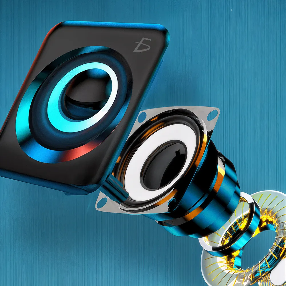 Esta bocina ofrece un sistema de sonido 2.1 con un subwoofer y dos bocinas satélite, entregando un audio potente y equilibrado. Su potencia total es de 5W + 2*3W, lo que significa 5W para el subwoofer y 3W para cada una de las dos bocinas.