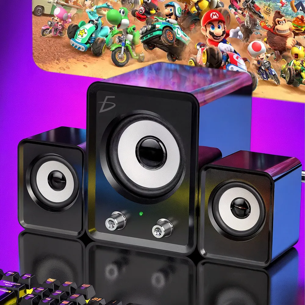 Sonido envolvente: Gracias a su sistema 2.1, disfrutarás de un sonido más envolvente y con mejor definición de bajos.