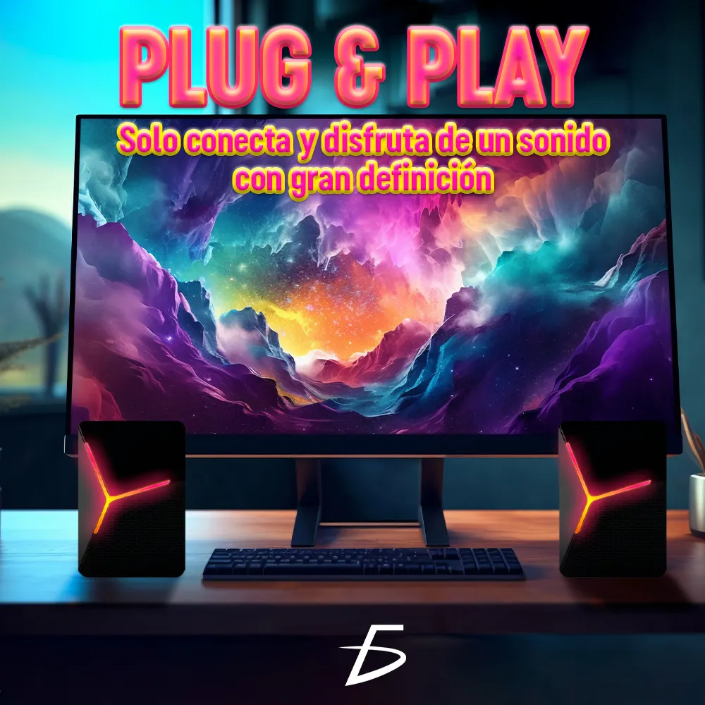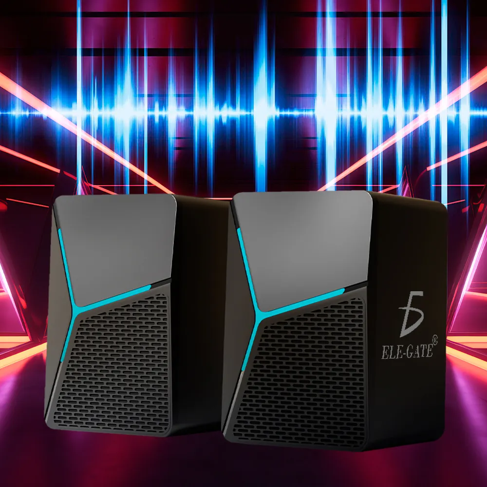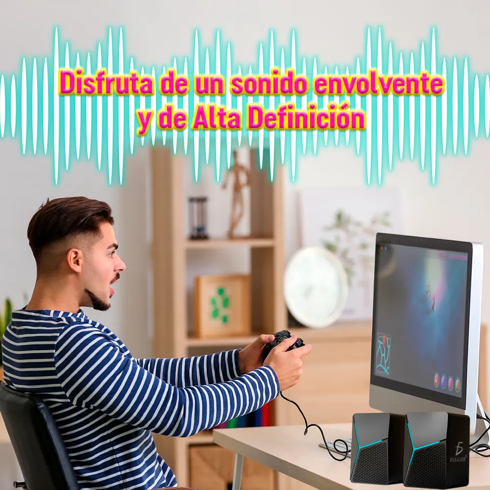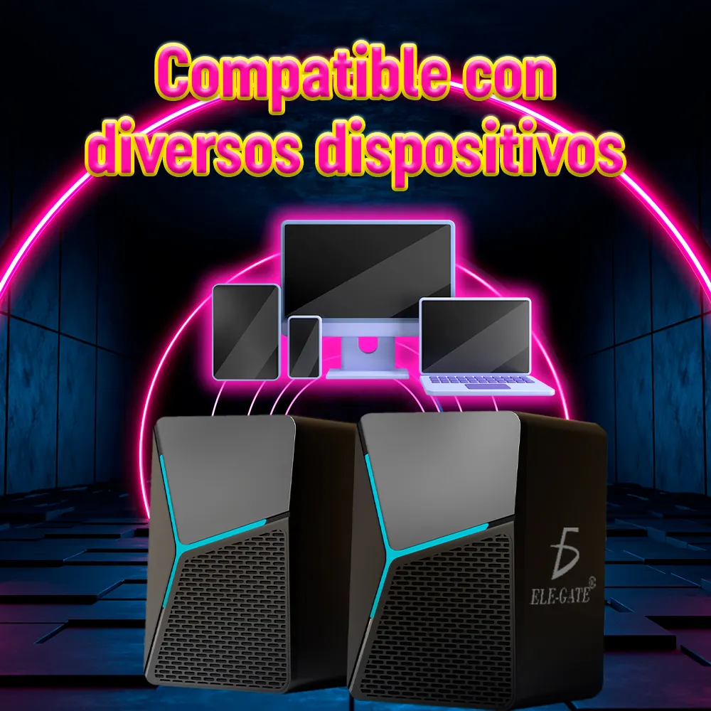 Estas bocinas gaming Ele-Gate no solo mejoran tu experiencia de audio, sino que también transforman tu espacio con su impactante iluminación RGB, brindándote una combinación perfecta de rendimiento y estilo. Ideal para quienes buscan calidad y un toque de personalización en su equipo.