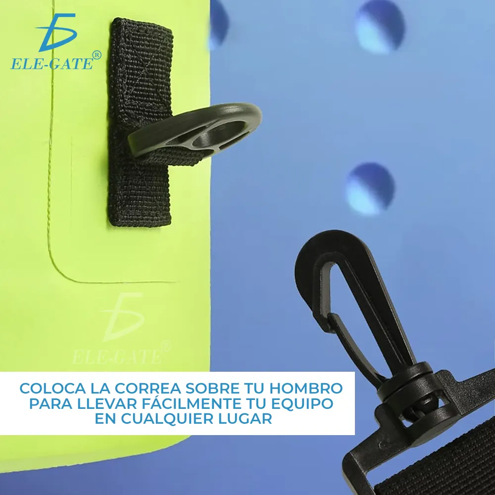 - Súper impermeable: mochila seca con sistema de cierre enrollable sólido que proporciona un sellado hermético seguro. Mantiene tu equipo seco en cualquier situación húmeda donde la bolsa no esté completamente sumergida. La bolsa seca impermeable puede flotar en el agua después de enrollarla y abrocharla, con el color de alta visibilidad para que puedas rastrear tu equipo fácilmente, especialmente si tu bolsa seca cae accidentalmente por la borda o por el río.