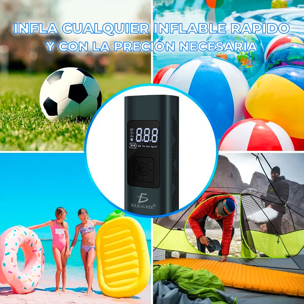 Bomba de inflador de llantas portatil es adecuada para pelotas, anillos de natación, juguetes inflables, bicicletas, motocicletas, automóviles pequeños y medianos,pero no es compatible con neumáticos de camiones grandes.Inflador de llantas mini cuerpo, inalámbrico portátil, tamaño pequeño, peso ligero, inflador de llantas fácil de transportar y viajar.