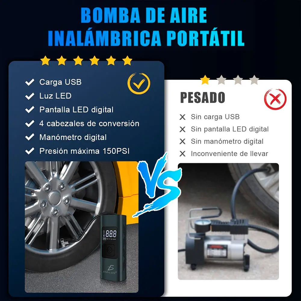 Bomba De Aire Inalámbrica Para Inflar Llantas
