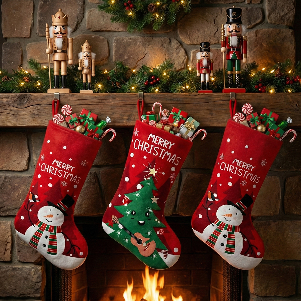 🎄 Diseño navideño elegante: Bota navideña con delicado diseño navideño, ideal para una decoración moderna y acogedora.