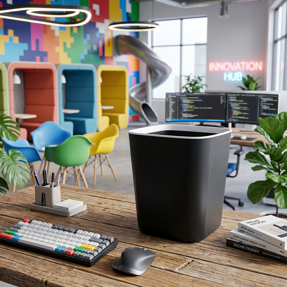 Fabricado con plástico reciclable libre de BPA, es una opción segura y sustentable para el hogar o la oficina. Su diseño moderno en colores sólidos combina perfectamente con cualquier ambiente, desde cocinas hasta baños u oficinas.