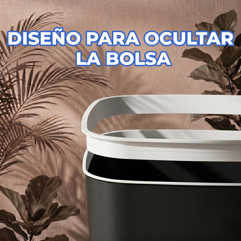 Incluye tira plástica interna que sujeta y oculta la bolsa de basura, manteniendo una apariencia limpia, ordenada y estética en todo momento.