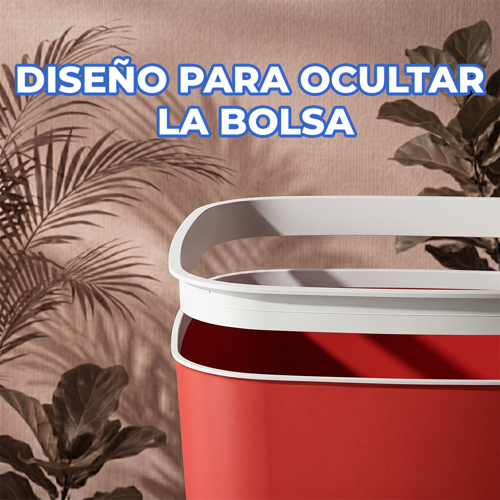 Incluye tira plástica interna que sujeta y oculta la bolsa de basura, manteniendo una apariencia limpia, ordenada y estética en todo momento.