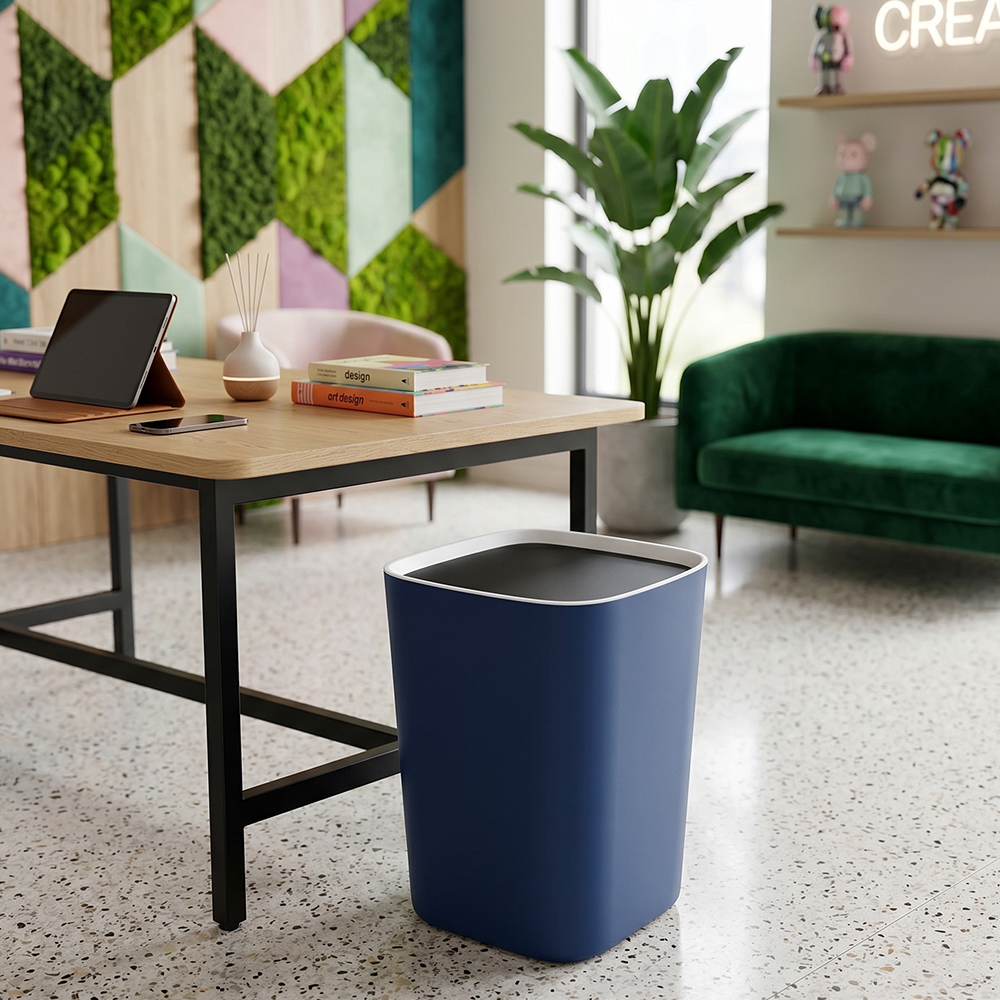 Fabricado con plástico reciclable libre de BPA, es una opción segura y sustentable para el hogar o la oficina. Su diseño moderno en colores sólidos combina perfectamente con cualquier ambiente, desde cocinas hasta baños u oficinas.