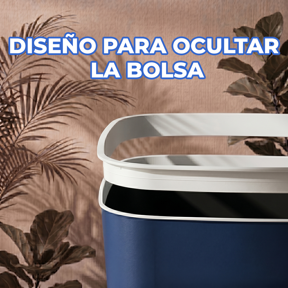 Incluye tira plástica interna que sujeta y oculta la bolsa de basura, manteniendo una apariencia limpia, ordenada y estética en todo momento.