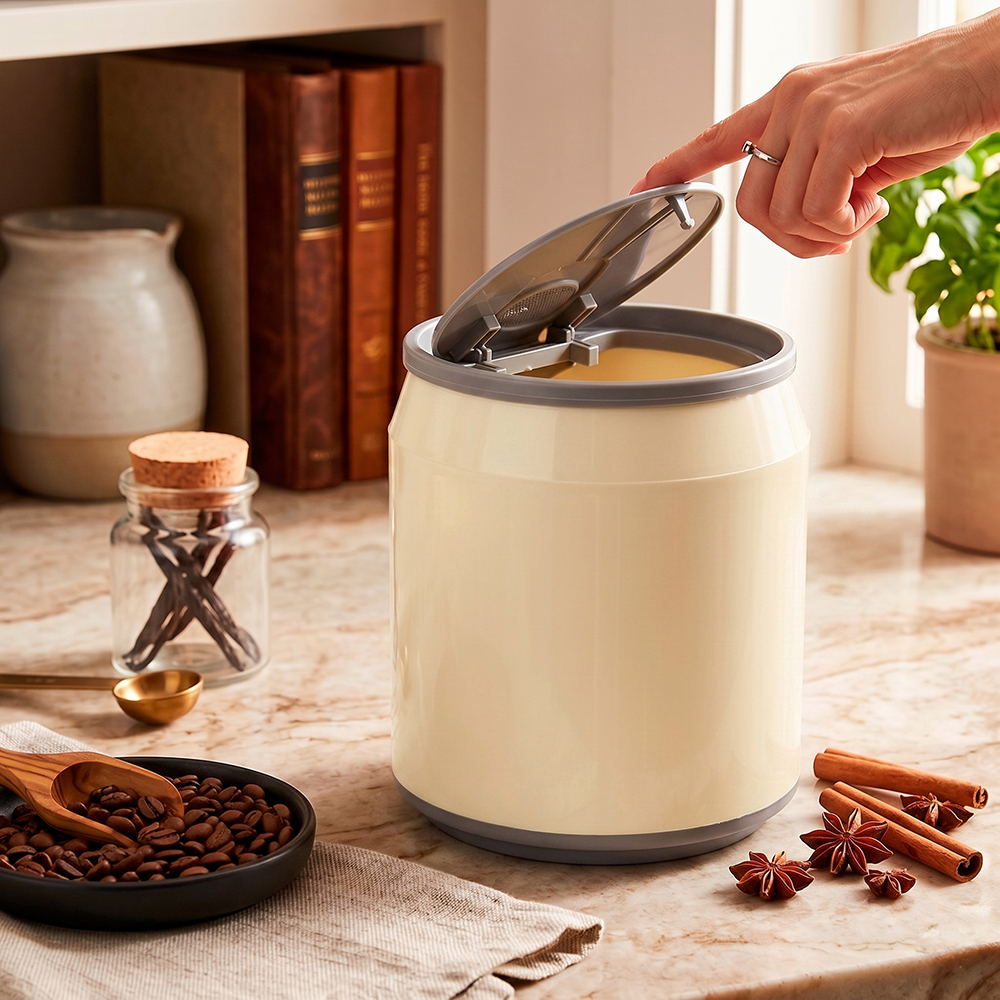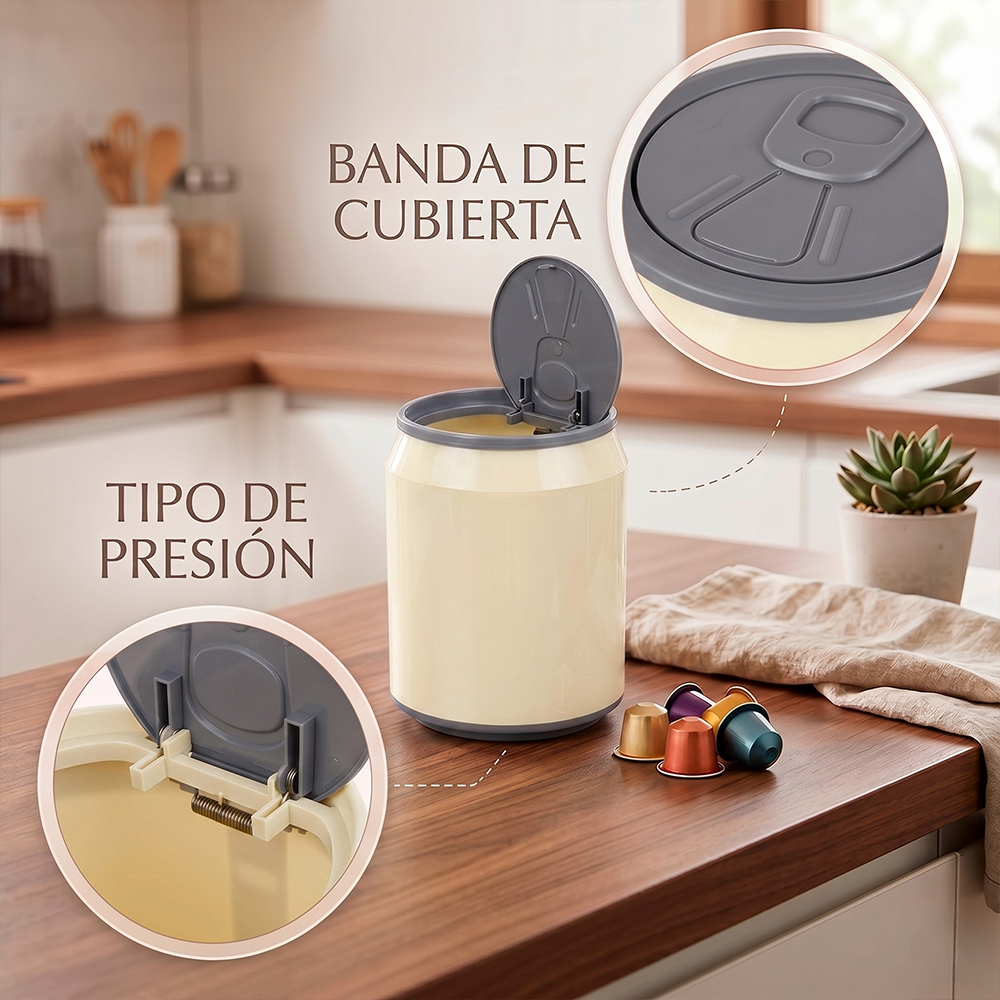 El diseño cilíndrico inspirado en una lata, junto con su variedad de colores, lo convierte en un elemento decorativo que se adapta fácilmente a diferentes ambientes como cocina, baño, oficina o recámara.