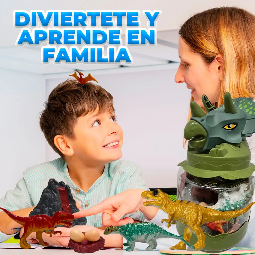 Bote en Forma de Cabeza de Dinosaurio con Juguetes de Dinosaurios para Niños.