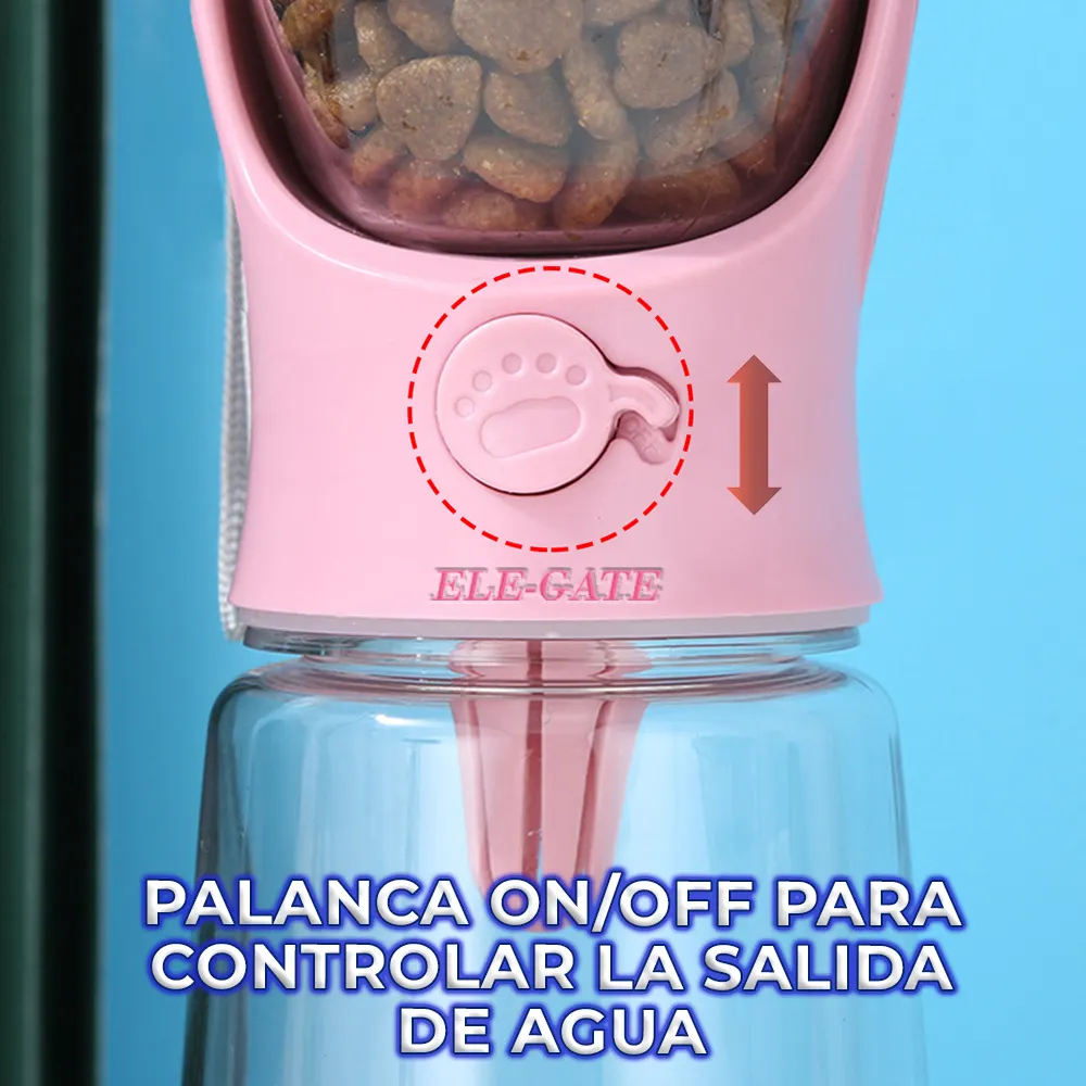 Botella De Agua Portátil Para Perros De 600 Ml, 2 En 1 con Dispensador de Croquetas. Ideal para mantener hidratado y con comida a tu perrito en tus paseos largos.