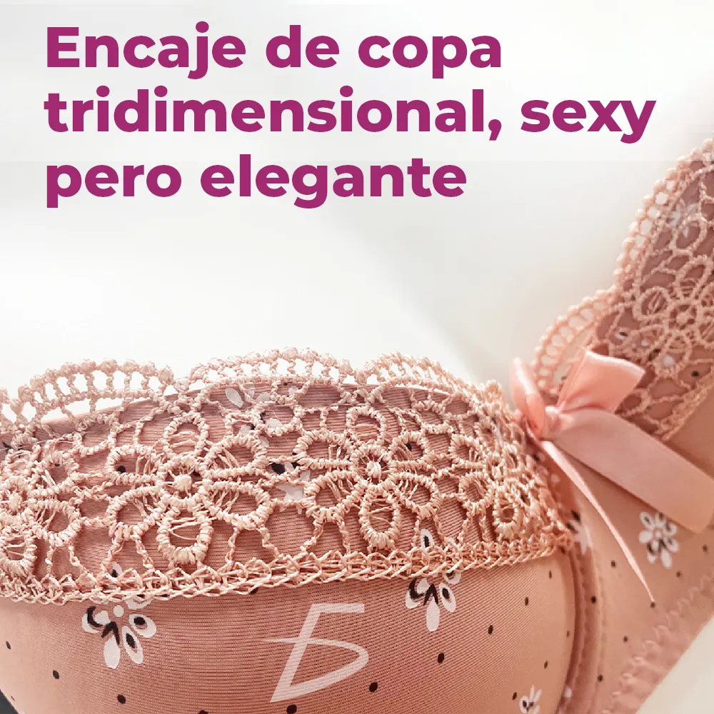 Brasier con Diseño de Flores y encaje con tirantes ajustables y triple gancho con efecto Push Up
