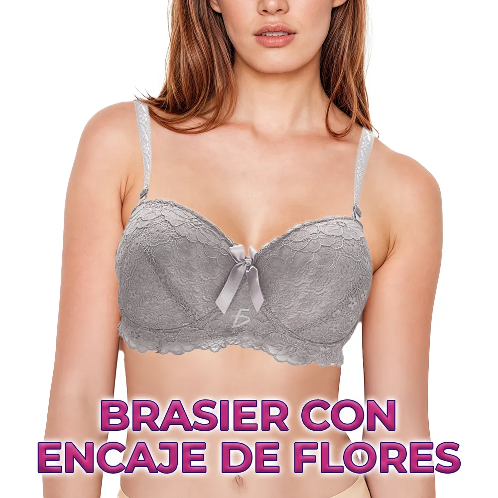 Brasier con Encaje de Flores, copa completa y tirantes ajustables con Push Up