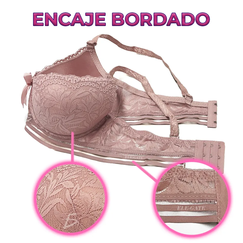 Brasier con Encaje y Push Up con tirantes ajustables y triple gancho en la espalda