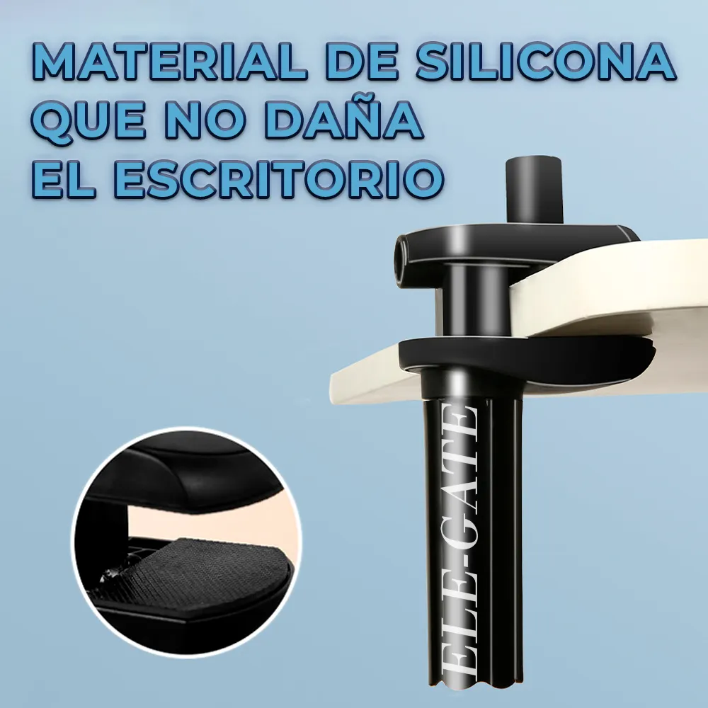 - Abrazadera resistente: Se sujeta de forma segura al borde del escritorio, manteniendo tus equipos estables y seguros.