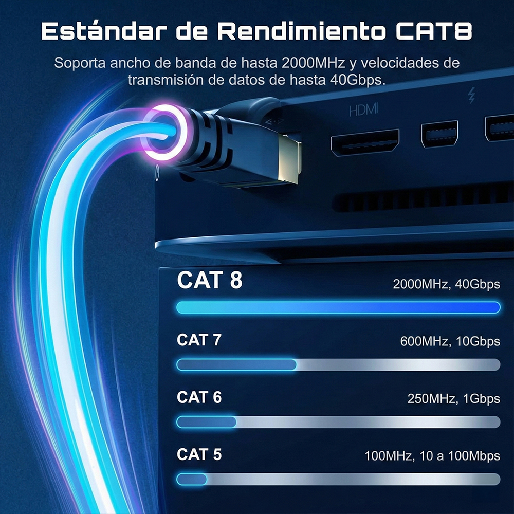 ¡Conecta tu dispositivo con la velocidad máxima gracias a este cable de red CAT 8 de alta performance!