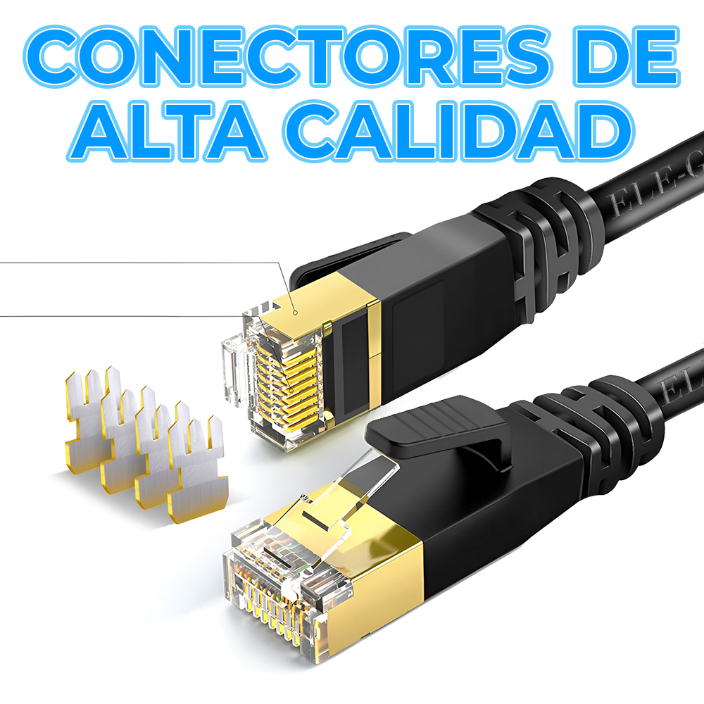 - Máxima velocidad de transferencia: El cable Cat7 ofrece velocidades de hasta 10 Gbps, lo que permite un rendimiento óptimo en aplicaciones de alta demanda, como streaming de video en 4K, juegos en línea intensivos y transferencia de archivos de gran tamaño.