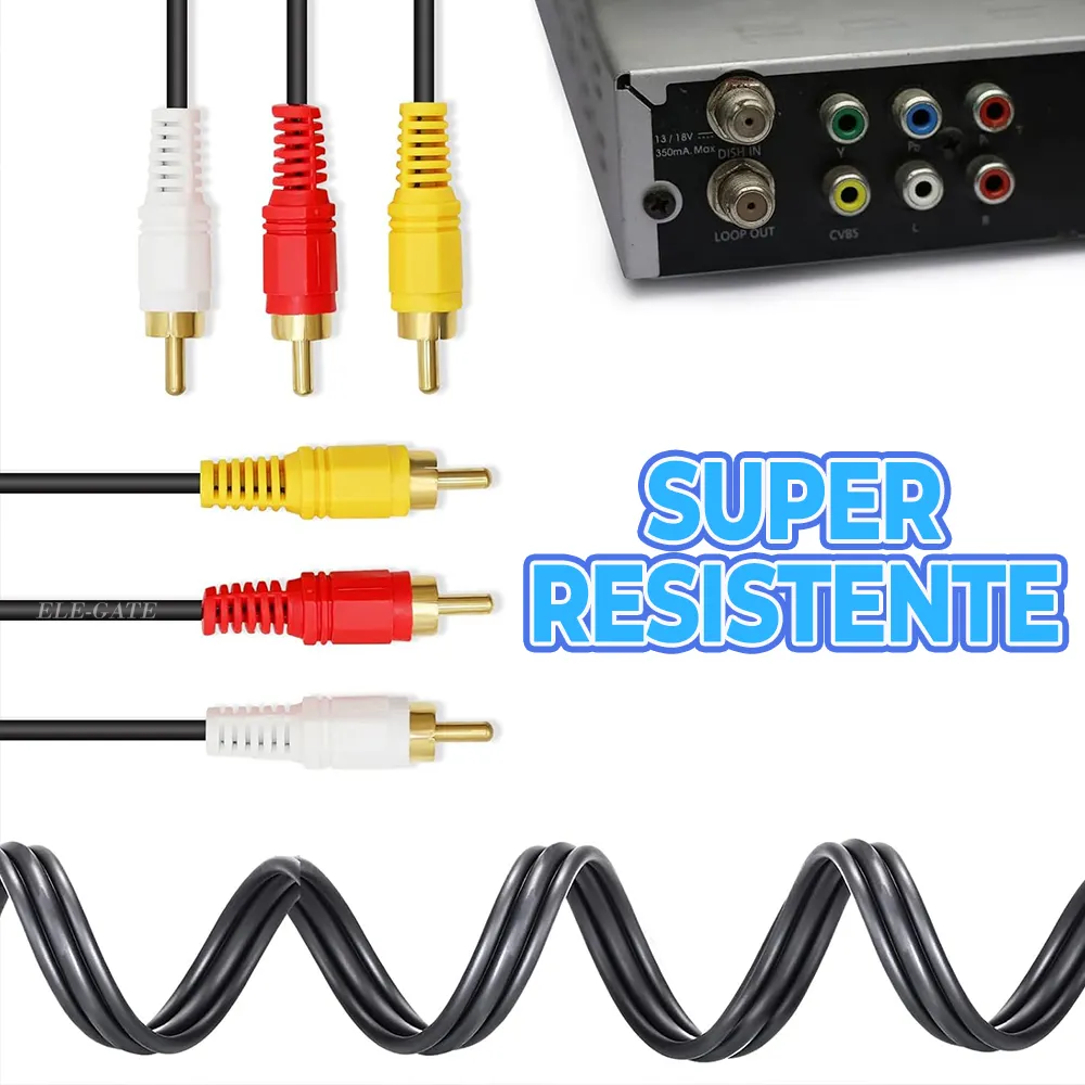 Sigue disfrutando de tus series y películas favoritas, así como de tus videojuegos preferidos con funcional cable RCA destinado para la resolución de audio y video. Es resistente y eficaz, con una compatibilidad total con tus dispositivos de video, y sencillo de conectar.
