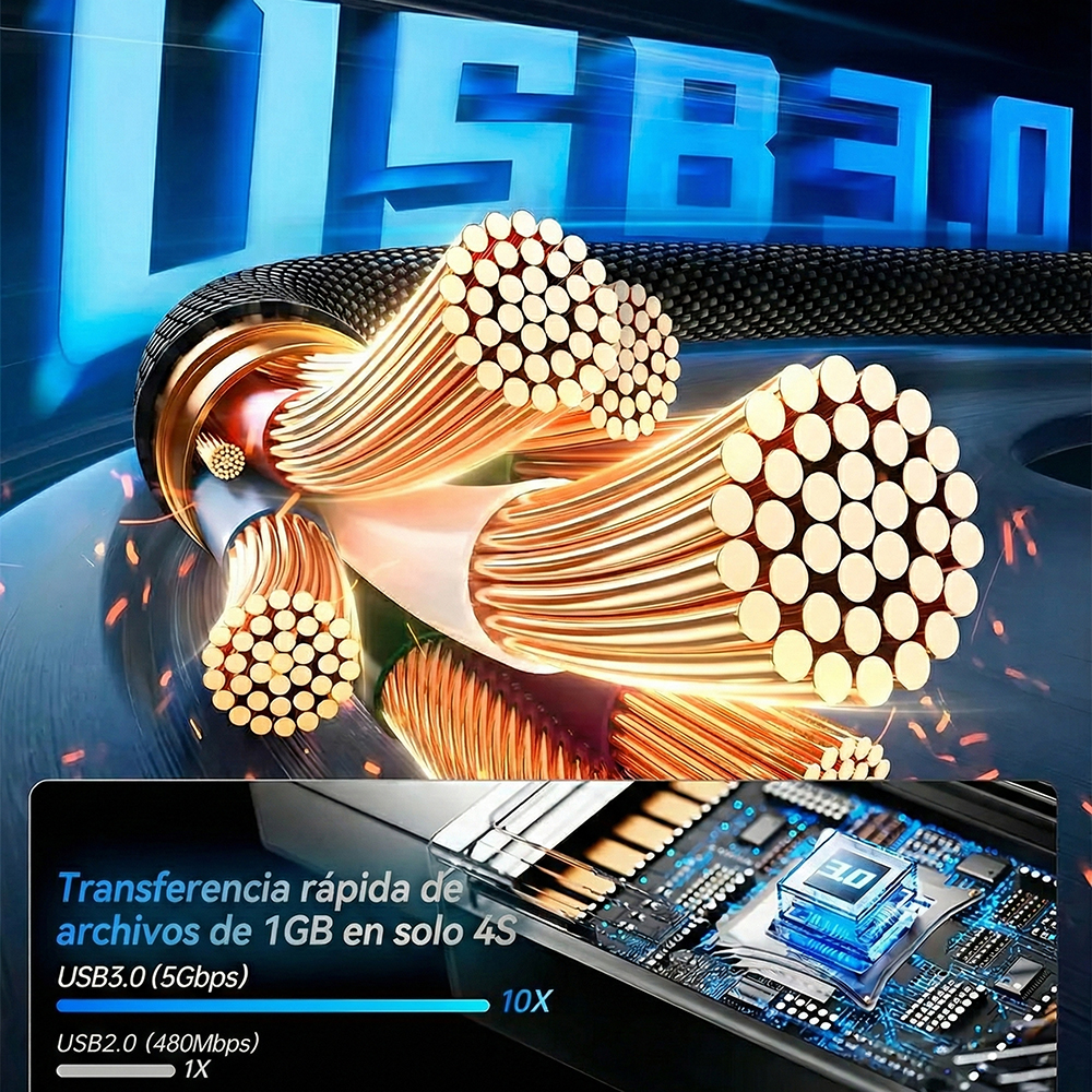 Este cable USB 3.0 macho a hembra de 1 metro es la solución perfecta para conectar dispositivos que están lejos del puerto original o para crear un sistema de organización más limpio y funcional.