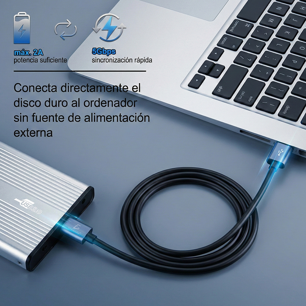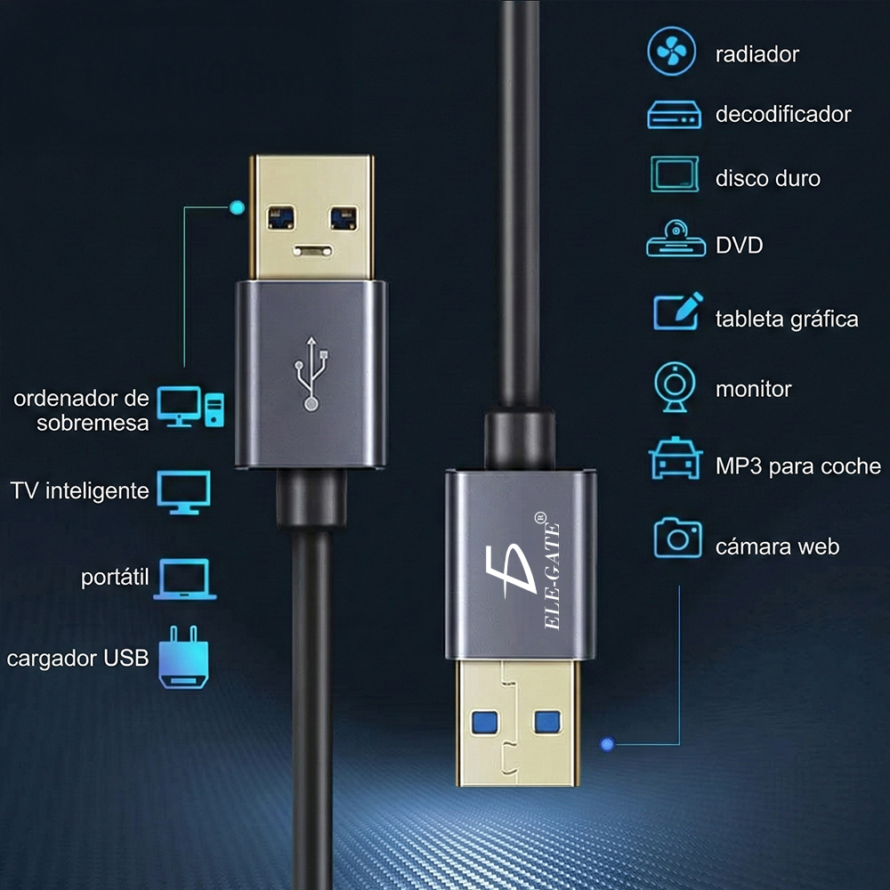 - Interfaz: USB 3.0 macho a macho (A-A)