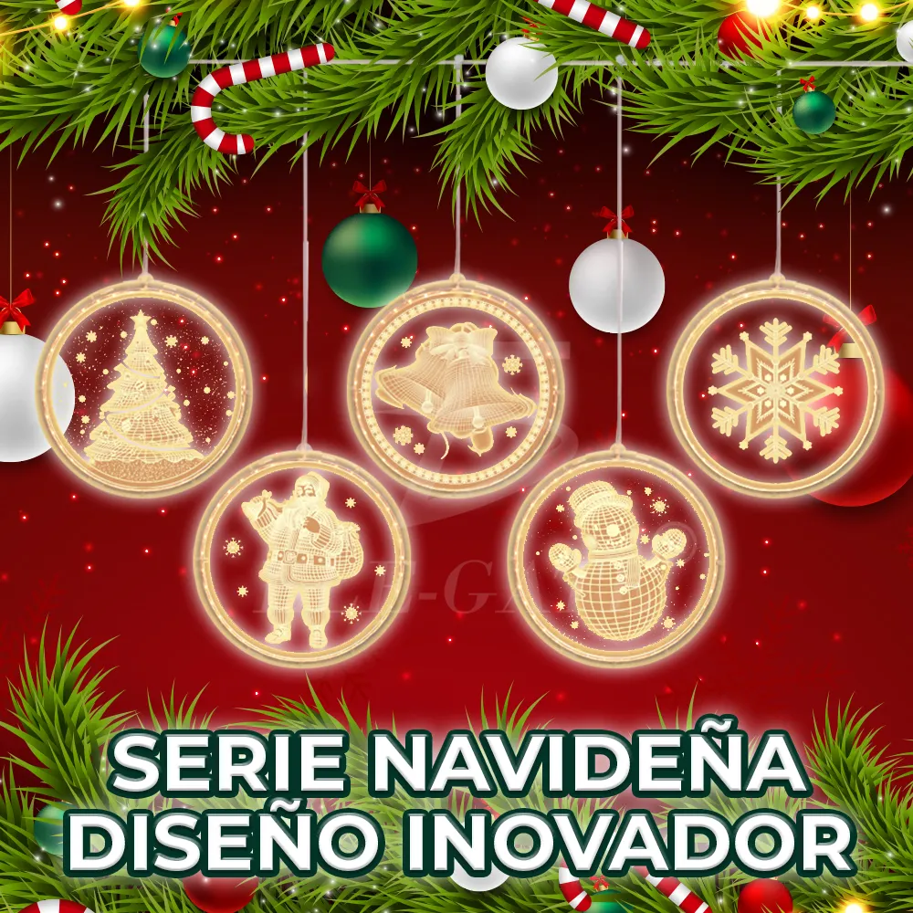 Serie de 5 Aros de Luces LED USB Trasparentes con Motivos Navideños para Exteriores e Interiores – Iluminación Decorativa para Jardín y Dormitorio.