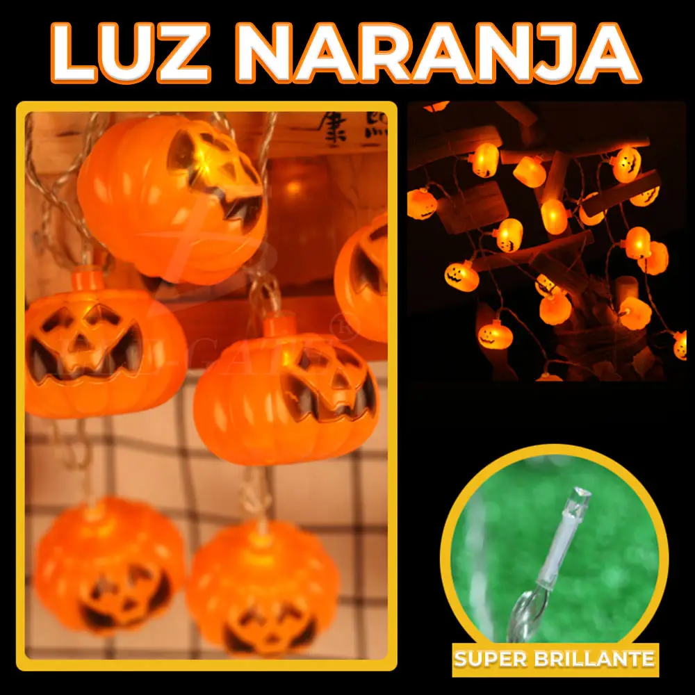 - Diseño: Luces en forma de calabaza.