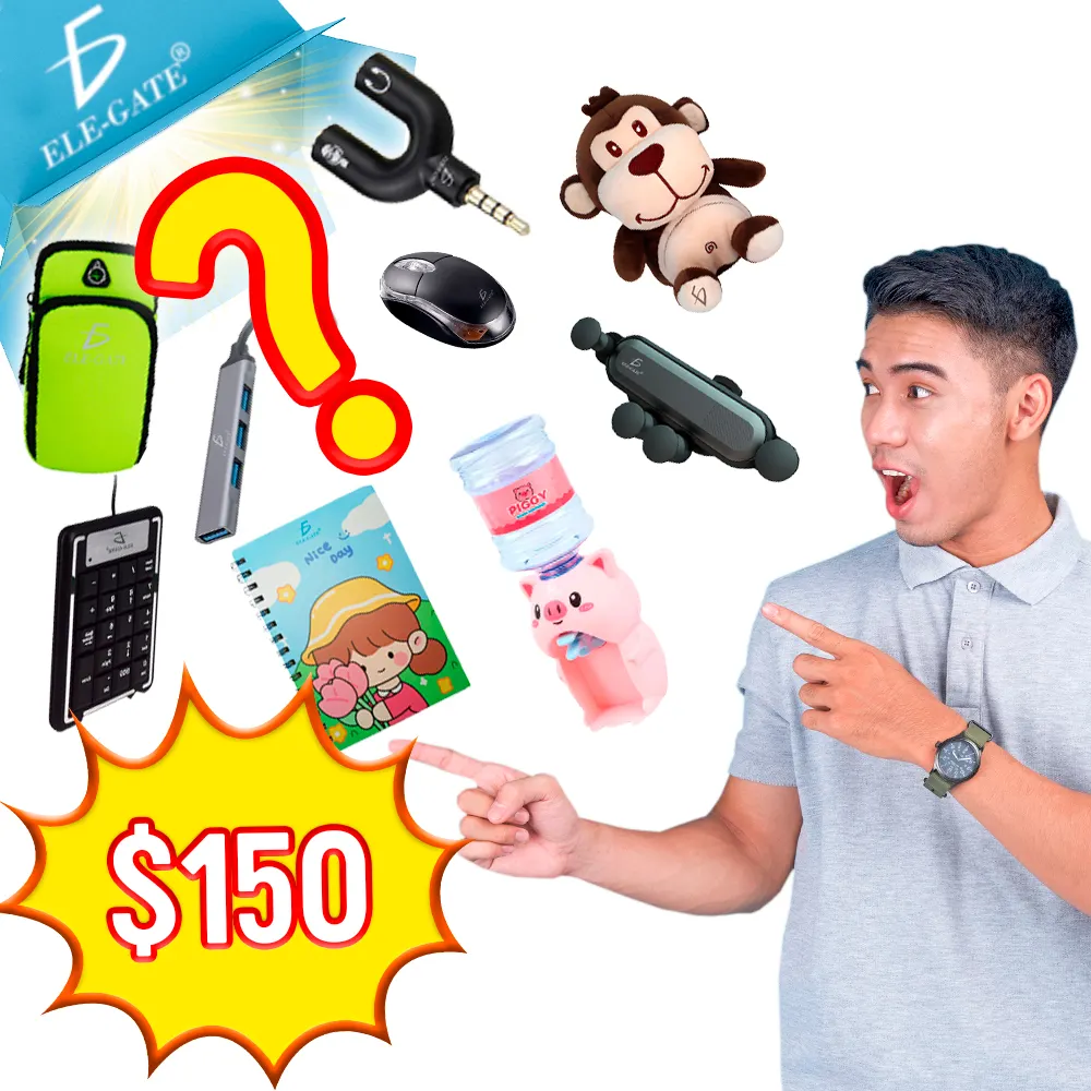Sorprendente con nuestra caja de 150 pesos de Outlet, productos 100% funcionales y con la calidad que a Ele-Gate distingue solo que sin caja. Disfruta de la gran variedad de productos que contiene esta caja misteriosa.