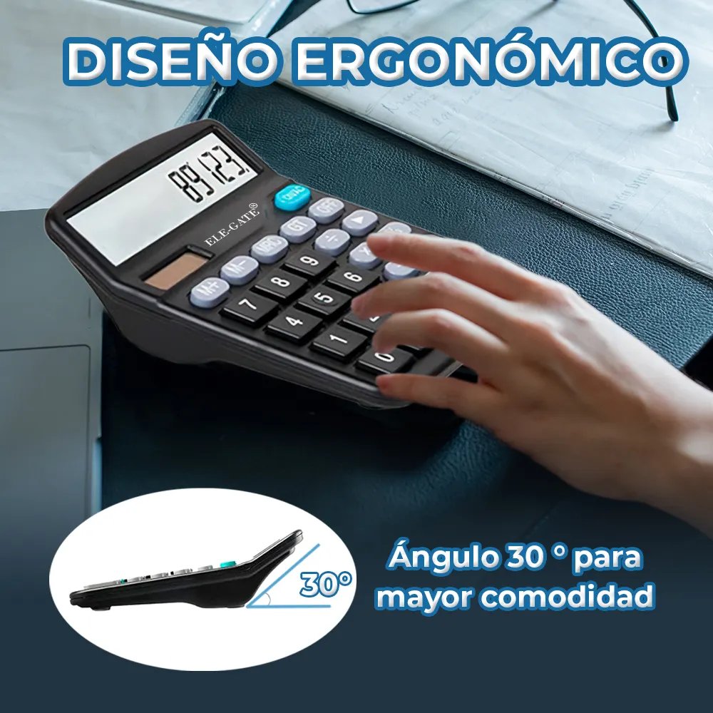 • La gran pantalla LCD de Ele-Gate se encuentra directamente en la parte superior de la calculadora, la pantalla LCD angular de 12 dígitos te ofrece una gran comodidad.