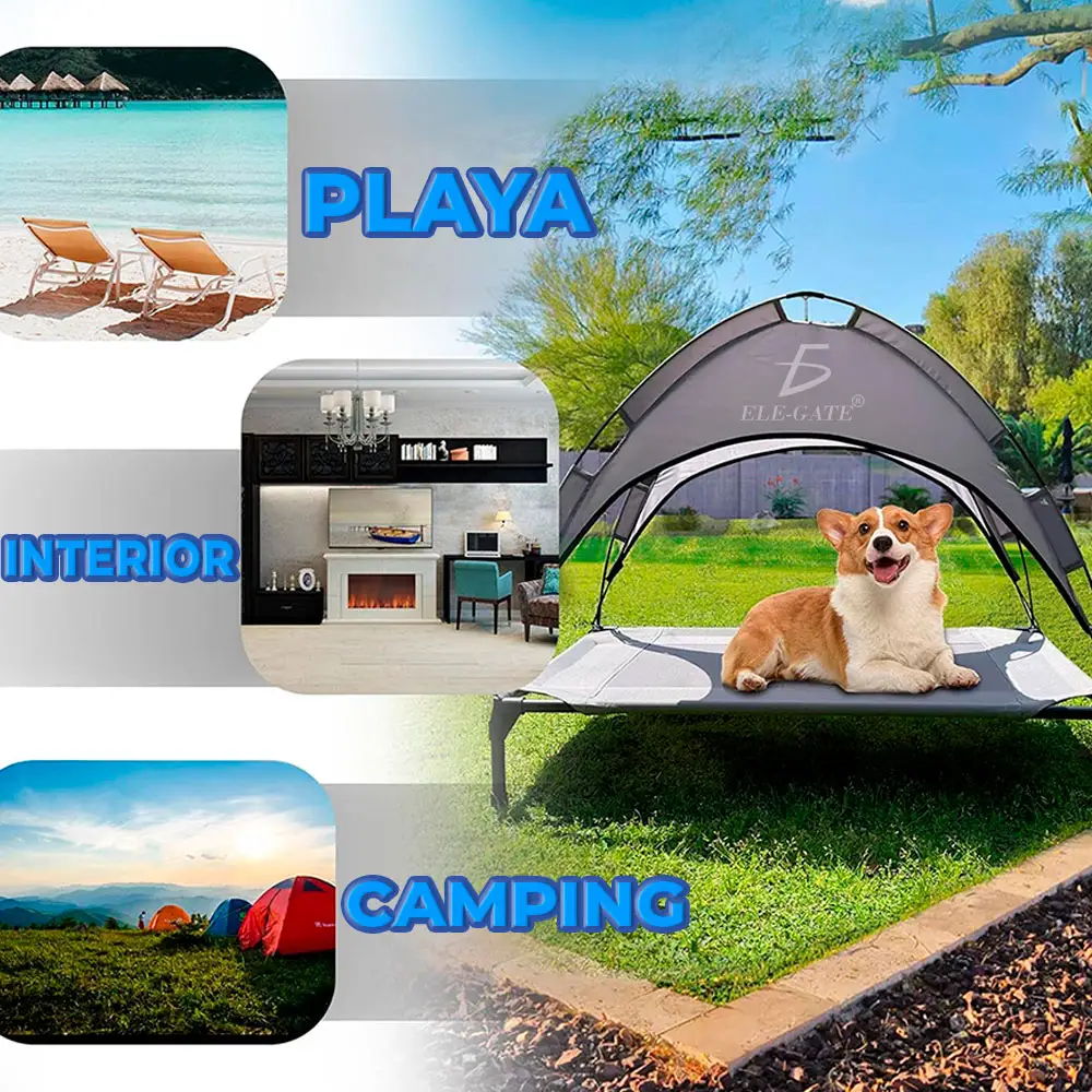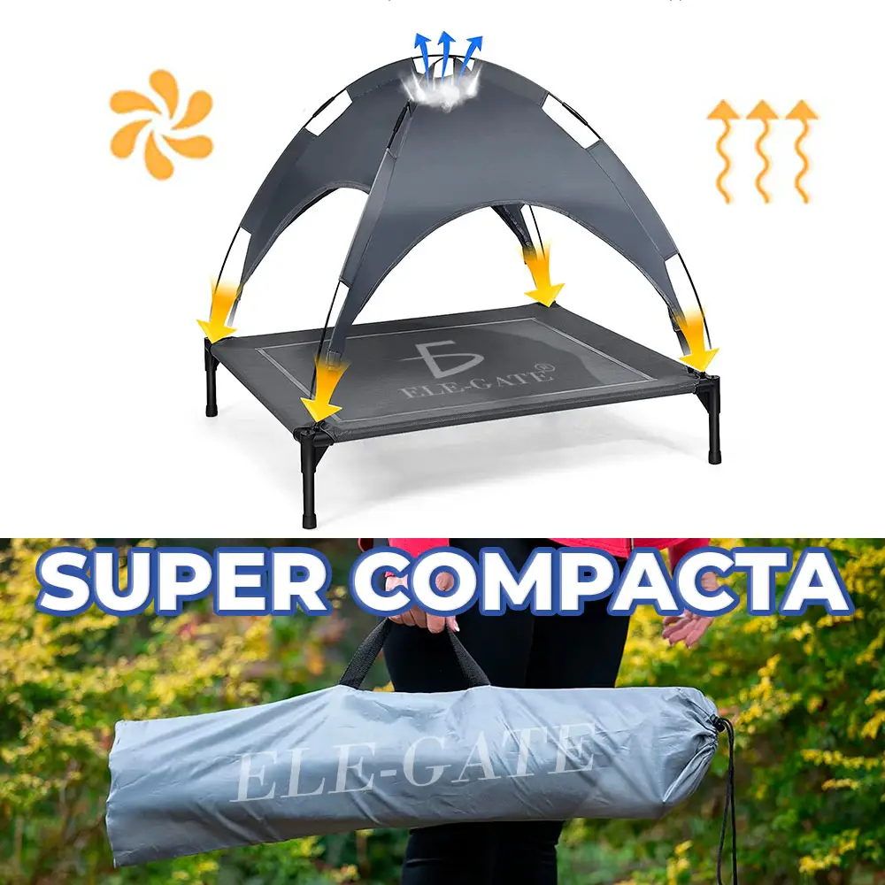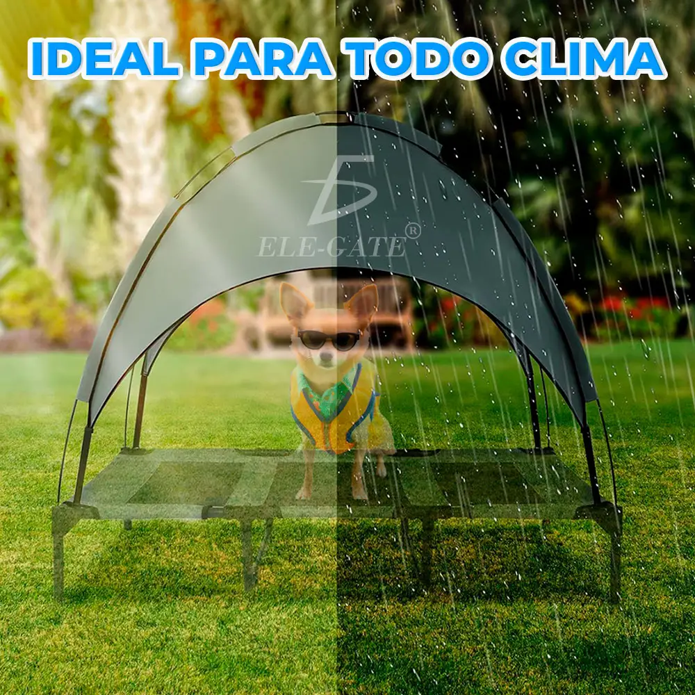 - Verano Refrescante: La tela transpirable mantiene a tus mascotas frescas y alejadas del calor. El diseño elevado proporciona una sensación de frescura en verano y el dosel les ofrece sombra y protección completa.