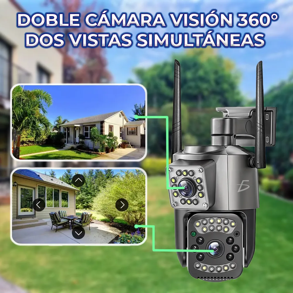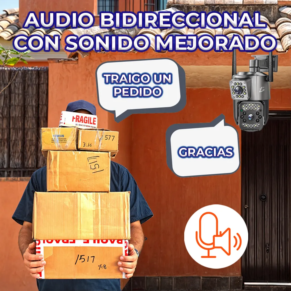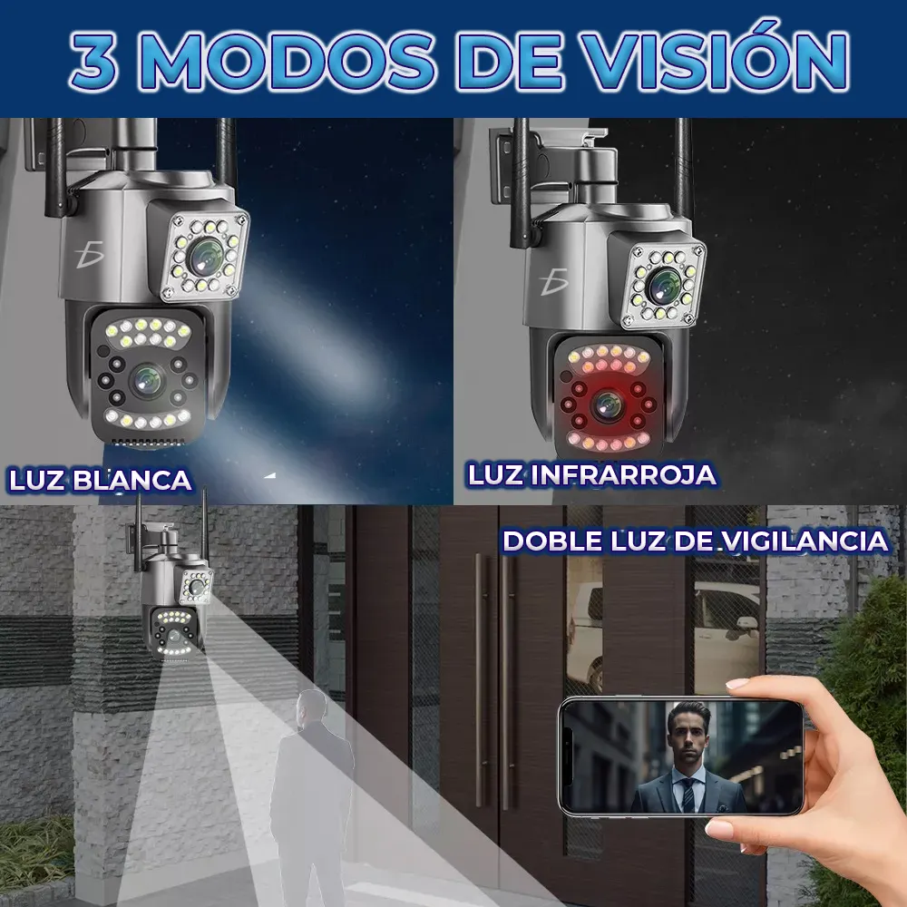 Cámara De Seguridad Ip66 Impermeable De 4 Megapíxeles Con Doble Cámara y sensor con tres modos, luz blanca, luz infrarroja y luz de seguridad. Audio Bidireccional con sonido mejorado.