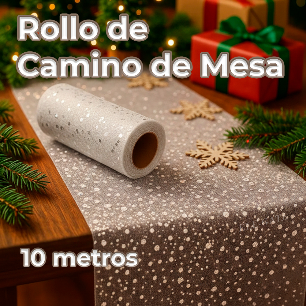 El rollo incluye 10 metros de largo y 15 cm de ancho, permitiendo cortarlo a la medida deseada para decorar mesas, bufets, repisas o crear detalles únicos en el árbol de Navidad, coronas y centros decorativos. Sus tonos dorado, plateado y rojizo aportan un estilo moderno y festivo que combina fácilmente con distintos estilos de decoración.