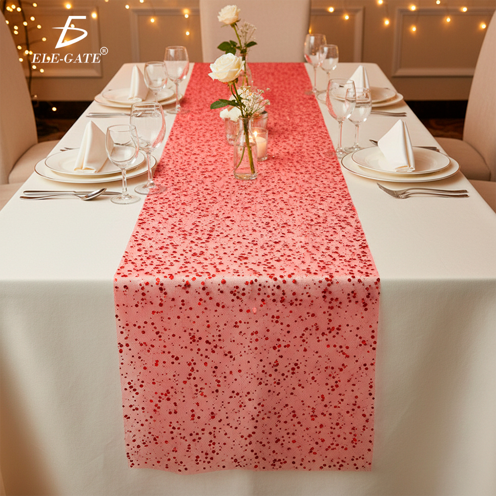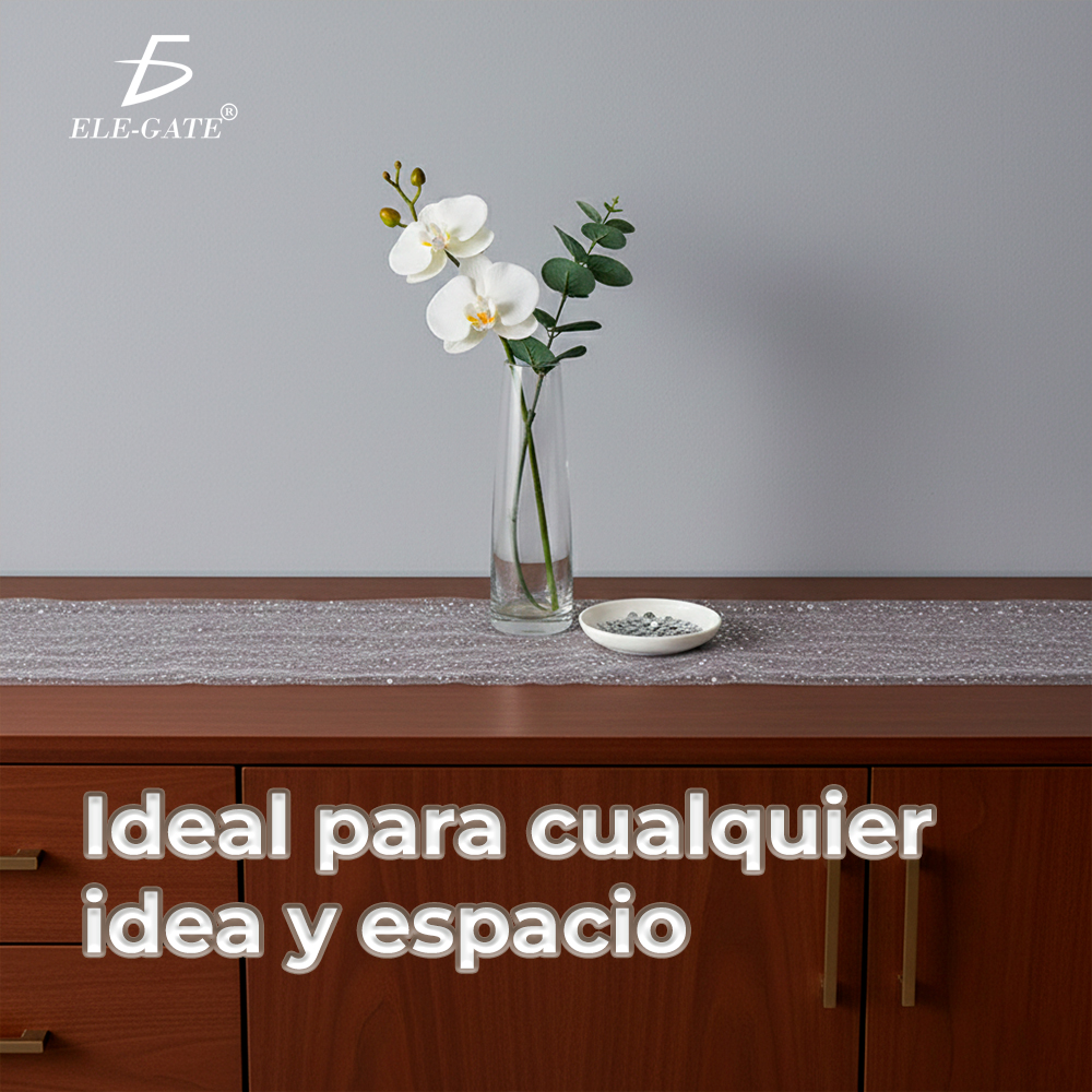 ✨ ACABADO BRILLANTE CON LENTEJUELAS – Camino de mesa con textura decorativa y lentejuelas que reflejan la luz, aportando elegancia, brillo y un efecto visual llamativo a cualquier espacio.