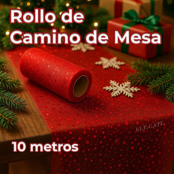 El rollo incluye 10 metros de largo y 15 cm de ancho, permitiendo cortarlo a la medida deseada para decorar mesas, bufets, repisas o crear detalles únicos en el árbol de Navidad, coronas y centros decorativos. Sus tonos dorado, plateado y rojizo aportan un estilo moderno y festivo que combina fácilmente con distintos estilos de decoración.