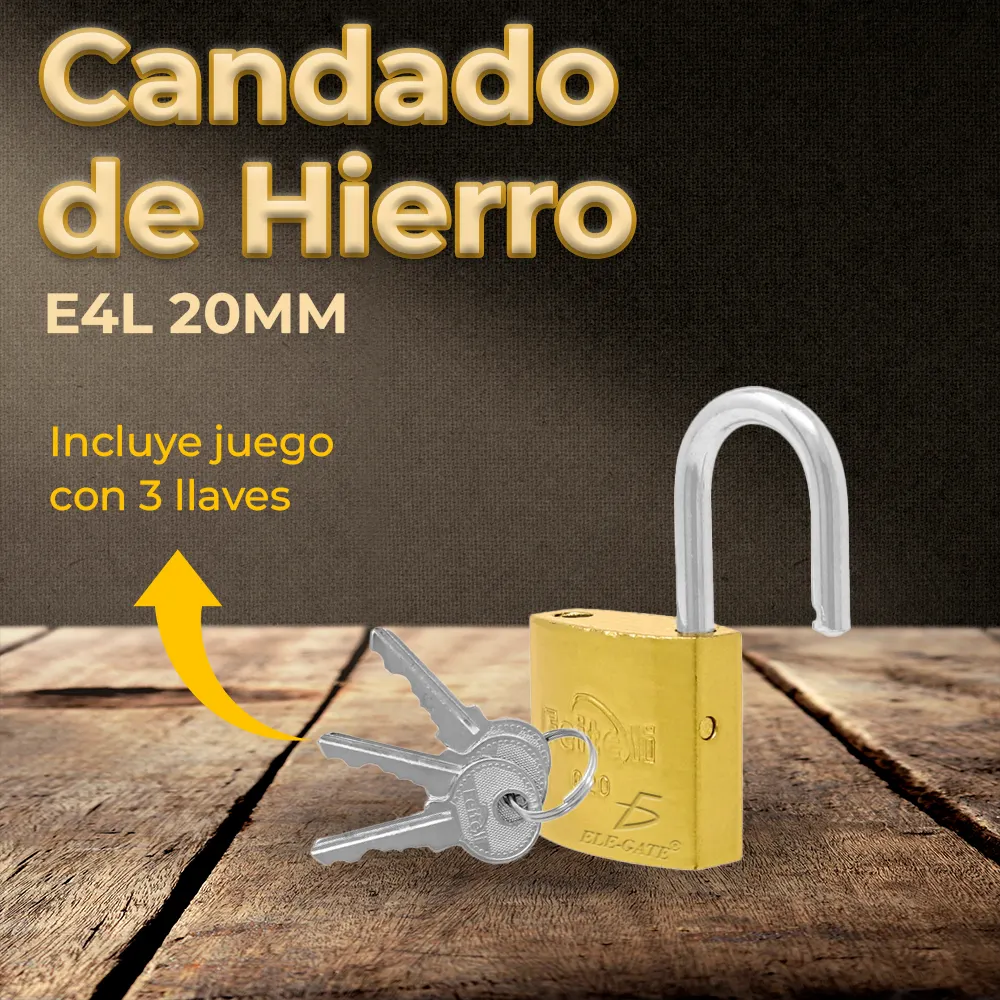 Candado de hierro con gancho corto y acabado dorado, ideal para asegurar cajones, maletas, casilleros y más. Fabricado con cuerpo de hierro altamente durable, garantiza resistencia y larga vida útil. Su mecanismo ofrece bloqueo y desbloqueo suave, e incluye juego de 3 llaves estándar. De fácil instalación y tamaño compacto de 20 mm, es perfecto para aplicaciones de seguridad ligera con estilo.
