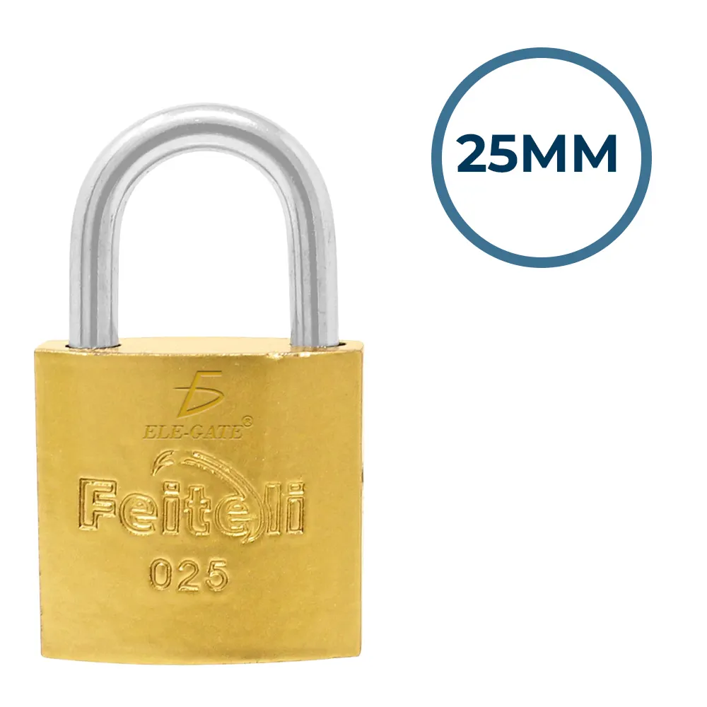 Candado de hierro con gancho corto y acabado dorado, ideal para asegurar cajones, maletas, casilleros y más. Fabricado con cuerpo de hierro altamente durable, garantiza resistencia y larga vida útil. Su mecanismo ofrece bloqueo y desbloqueo suave, e incluye juego de 3 llaves estándar. De fácil instalación y tamaño compacto de 25 mm, es perfecto para aplicaciones de seguridad ligera con estilo.