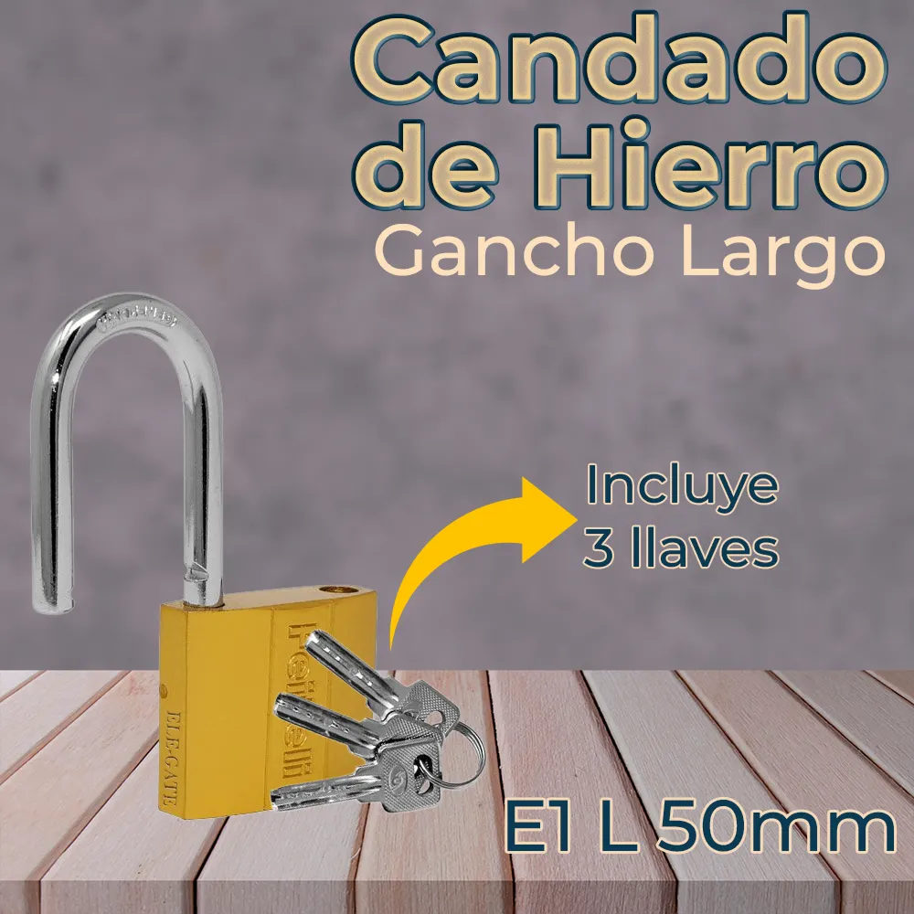 Candado de hierro de 50 mm con gancho largo, ideal para proteger puertas, rejas, lockers y más en el hogar, negocios, bodegas o escuelas. Fabricado para ofrecer seguridad confiable y durabilidad prolongada.