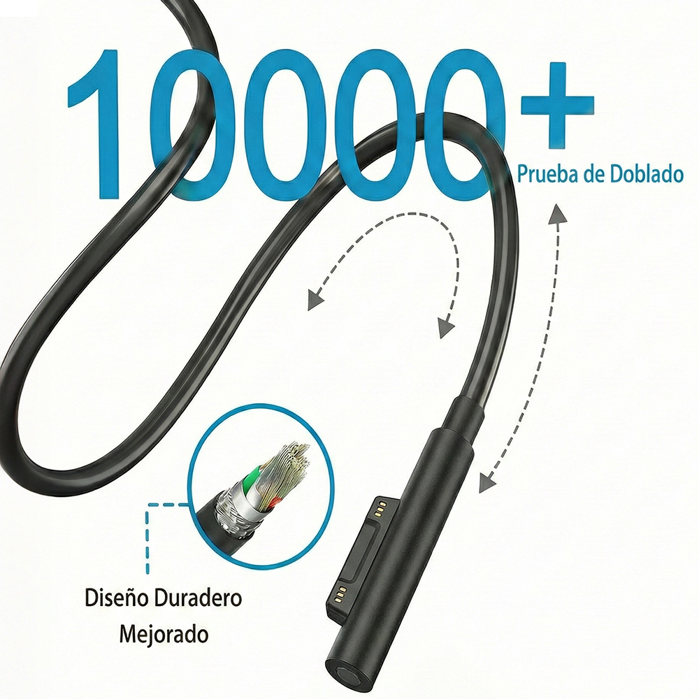 Potente, seguro y confiable. Este adaptador de corriente de 127W está diseñado como repuesto compatible para una amplia gama de dispositivos Surface, ofreciendo carga rápida y estable incluso en modelos de alto rendimiento como Surface Book y Surface Laptop.