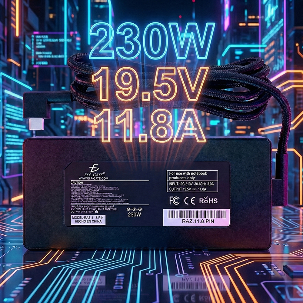 Este adaptador de corriente de 230W está diseñado como repuesto totalmente compatible para portátiles Razer Blade 15, ofreciendo potencia estable, carga segura y alto rendimiento, ideal para gaming y tareas exigentes.