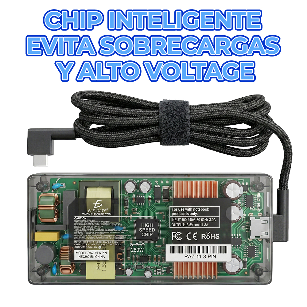 Este adaptador de corriente de 230W está diseñado como repuesto totalmente compatible para portátiles Razer Blade 15, ofreciendo potencia estable, carga segura y alto rendimiento, ideal para gaming y tareas exigentes.