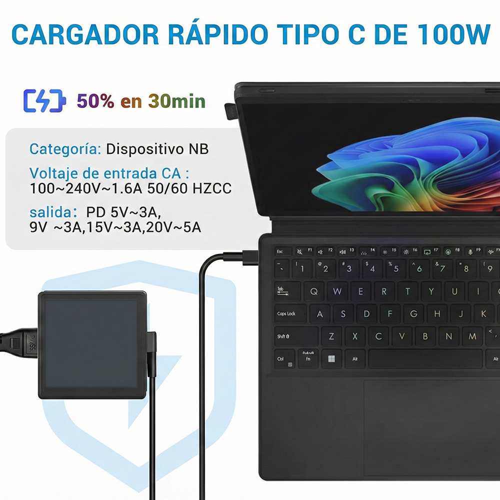 ⚠️ Importante: Verifica que tu laptop Asus admita carga por USB-C y requiera 100W, ya que algunos modelos utilizan USB-C solo para datos o potencias menores.