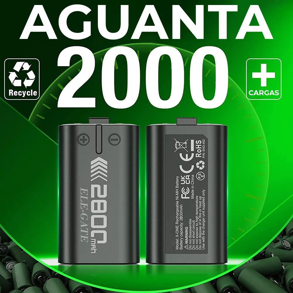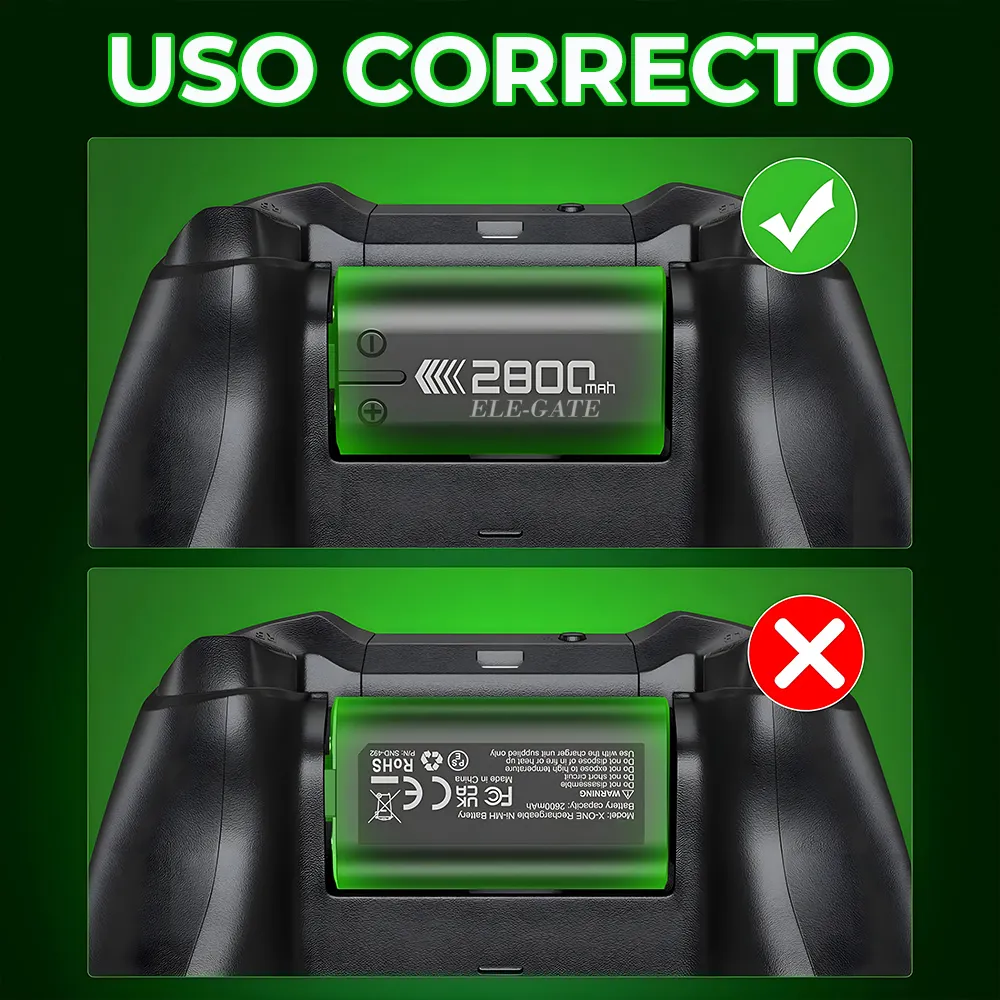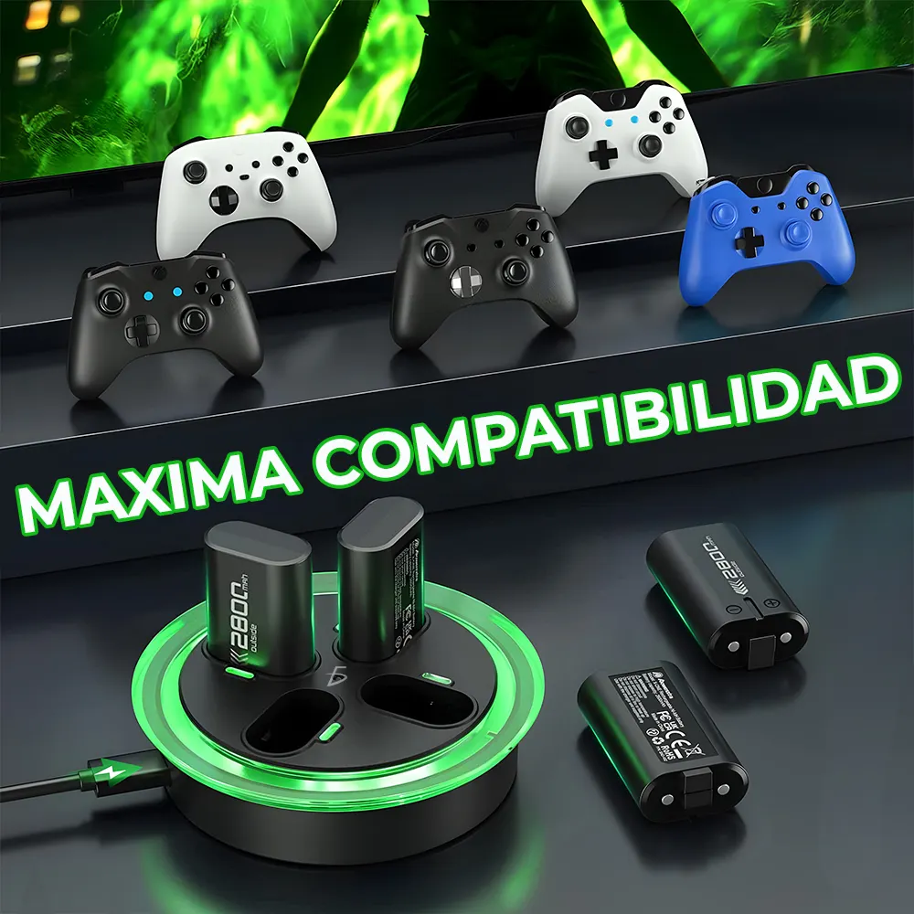 Cargador de 4 pilas para Xbox incluye 4 pilas de 2800 MaH, cable tipo Usb a tipo C. Máxima velocidad de carga, para muchas horas de juego continuó