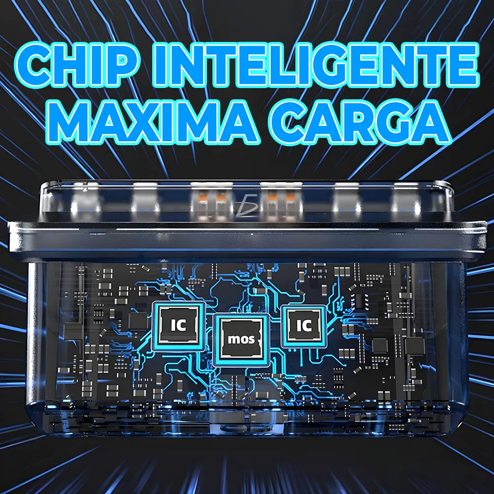 - Tecnología Avanzada con Chip Inteligente: Equipado con un chip inteligente que asegura un flujo de carga constante y equilibrado en todas las conexiones simultáneamente, evitando sobrecalentamientos y protegiendo tus dispositivos.
