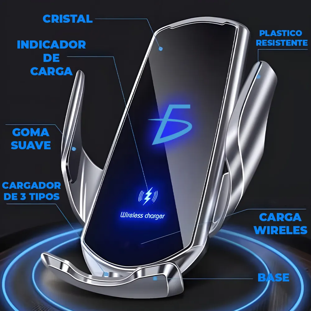 • Sensor Inteligente: Los brazos se activan automáticamente al detectar la proximidad del dispositivo, asegurando una sujeción rápida y segura.