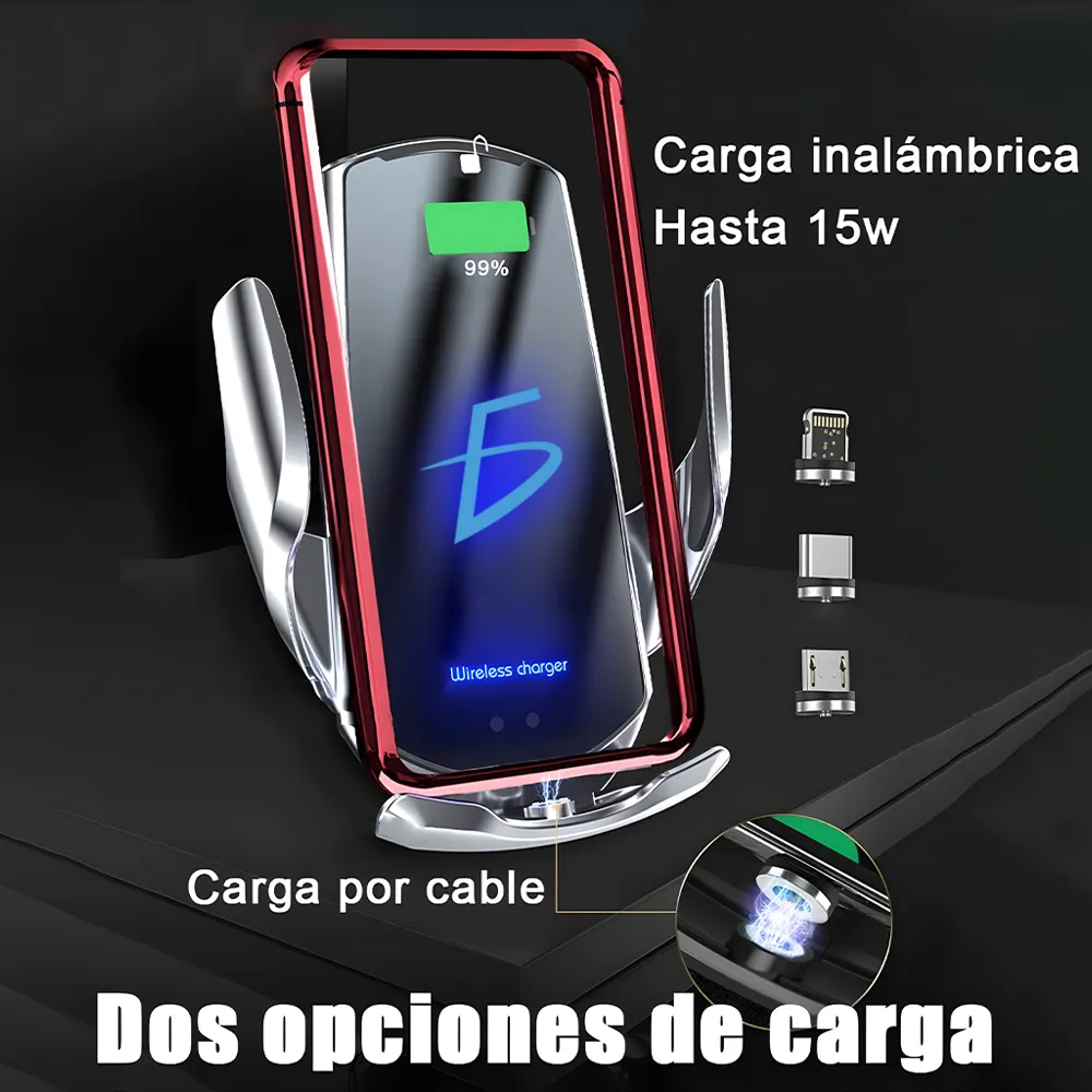 Cargador Inalámbrico para Auto – Soporte de Carga Rápida 15W