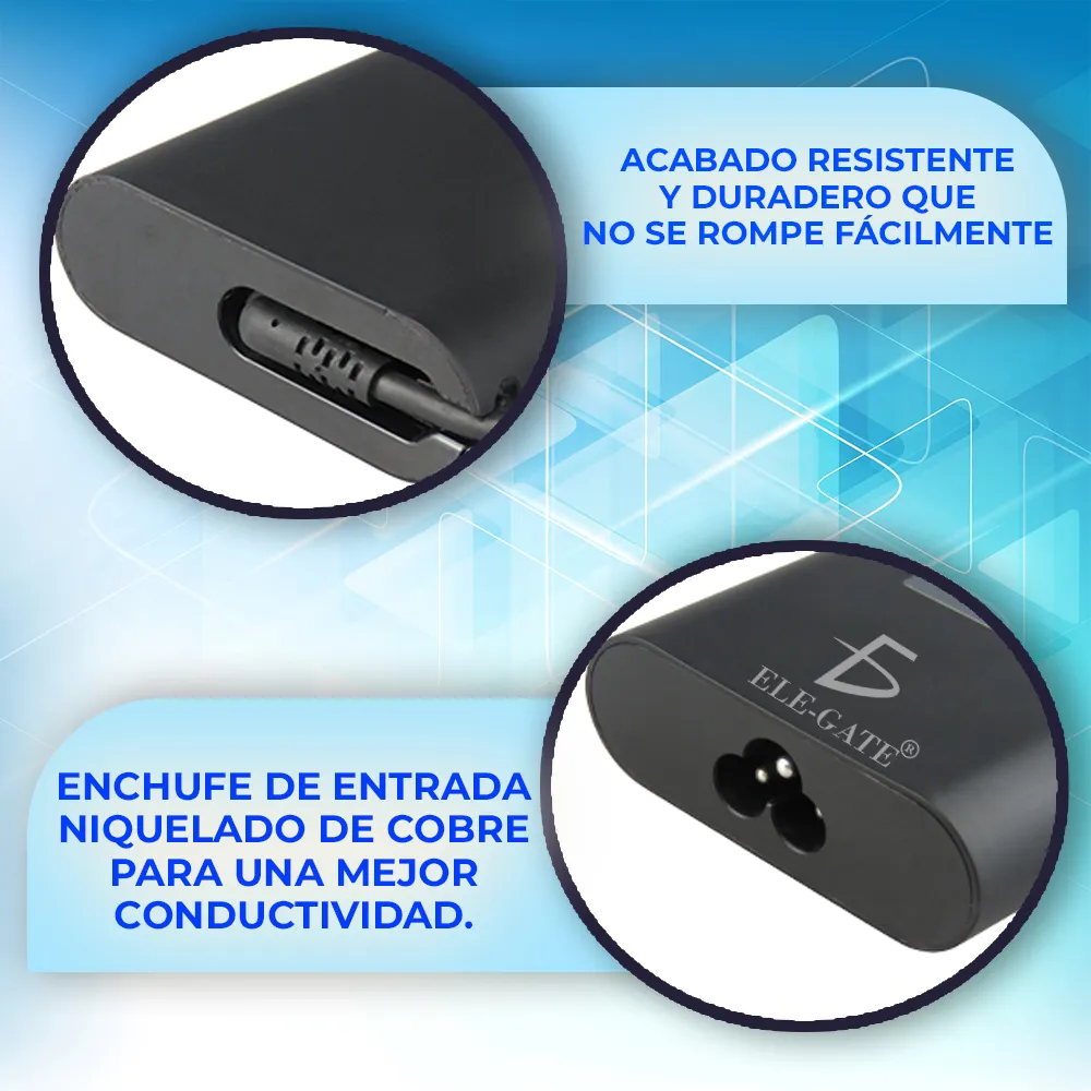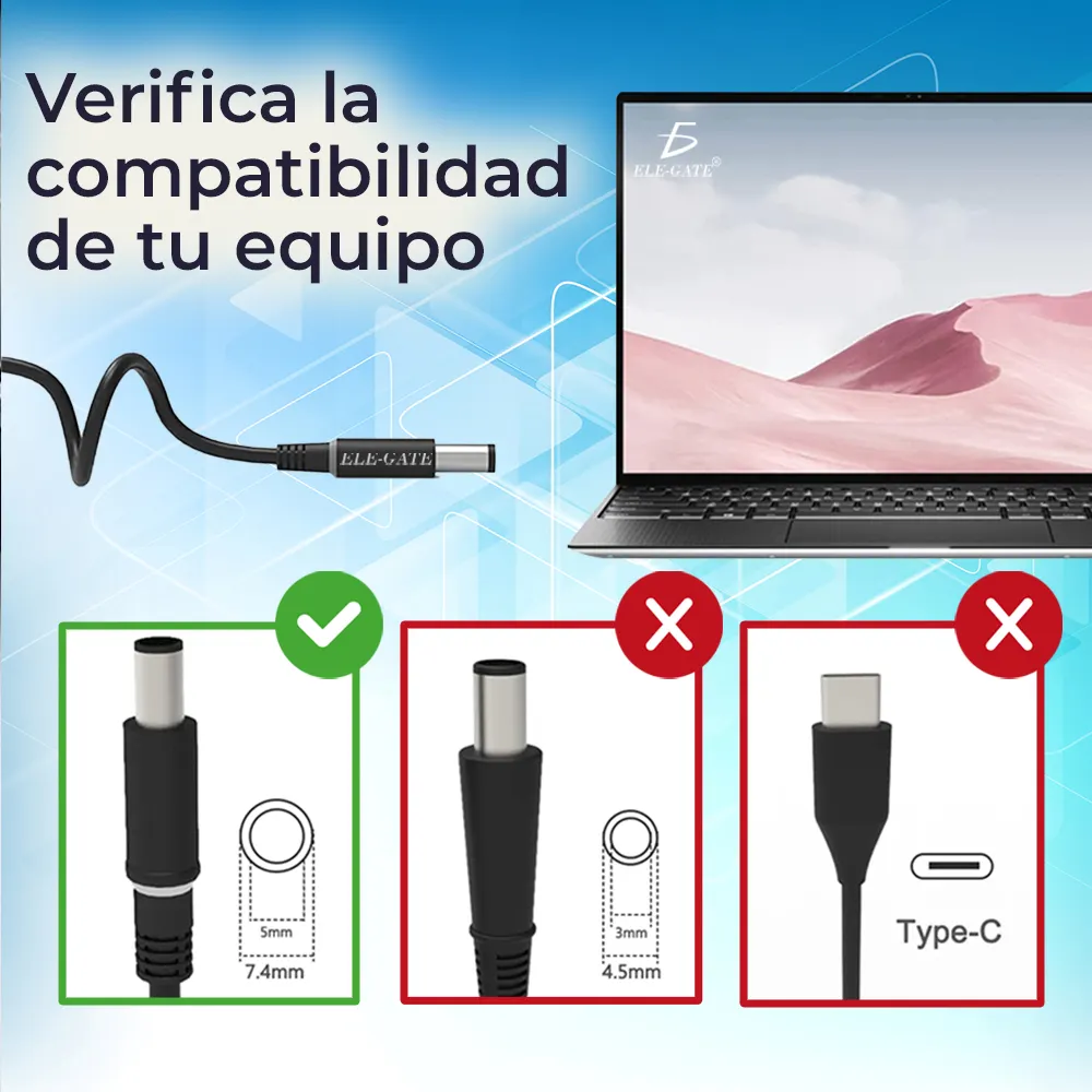 Compatibilidad: Este cargador es compatible con dispositivos que requieren una potencia de 90W, una corriente de 4.62A a 19.5V y un conector de 7.4×5.0mm.