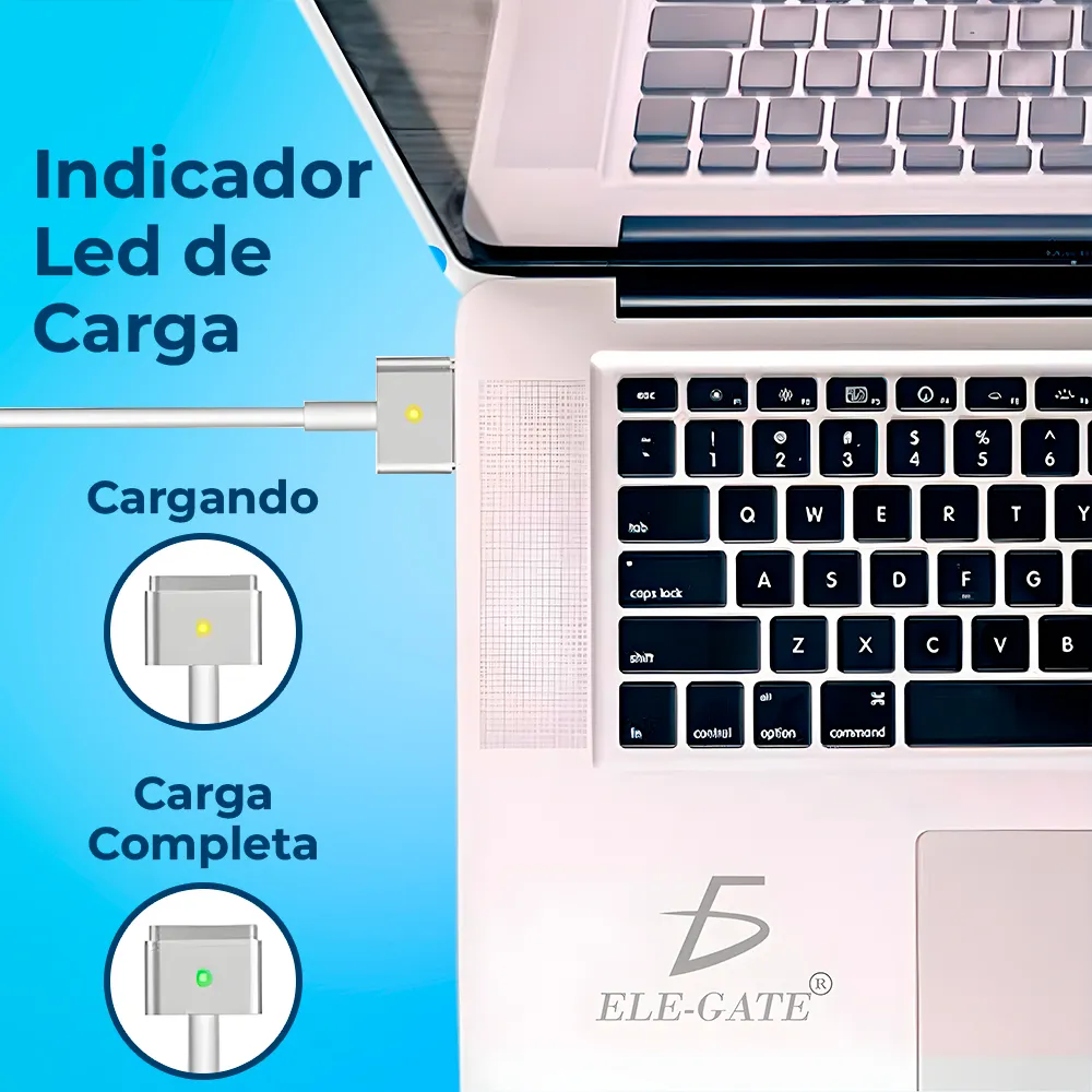 Cargador Compatible Mac Book Air 85W con MagSafe 2 Tipo T 20V/4.25A 18.5V/4.6A 50-60Hz. LA LUZ LED PROPORCIONA INFORMACIÓN DE ESTADO: Una luz ámbar le permite saber que su portátil se está cargando, mientras que una luz verde le indica que tiene una carga completa