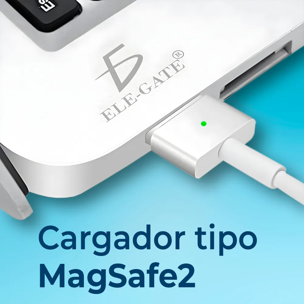 Cargador Compatible Mac Book Air 45W con MagSafe 2 Tipo T 14.5V/3.1A 14.85V/3.05A 50-60Hz . LA LUZ LED PROPORCIONA INFORMACIÓN DE ESTADO: Una luz ámbar le permite saber que su portátil se está cargando, mientras que una luz verde le indica que tiene una carga completa