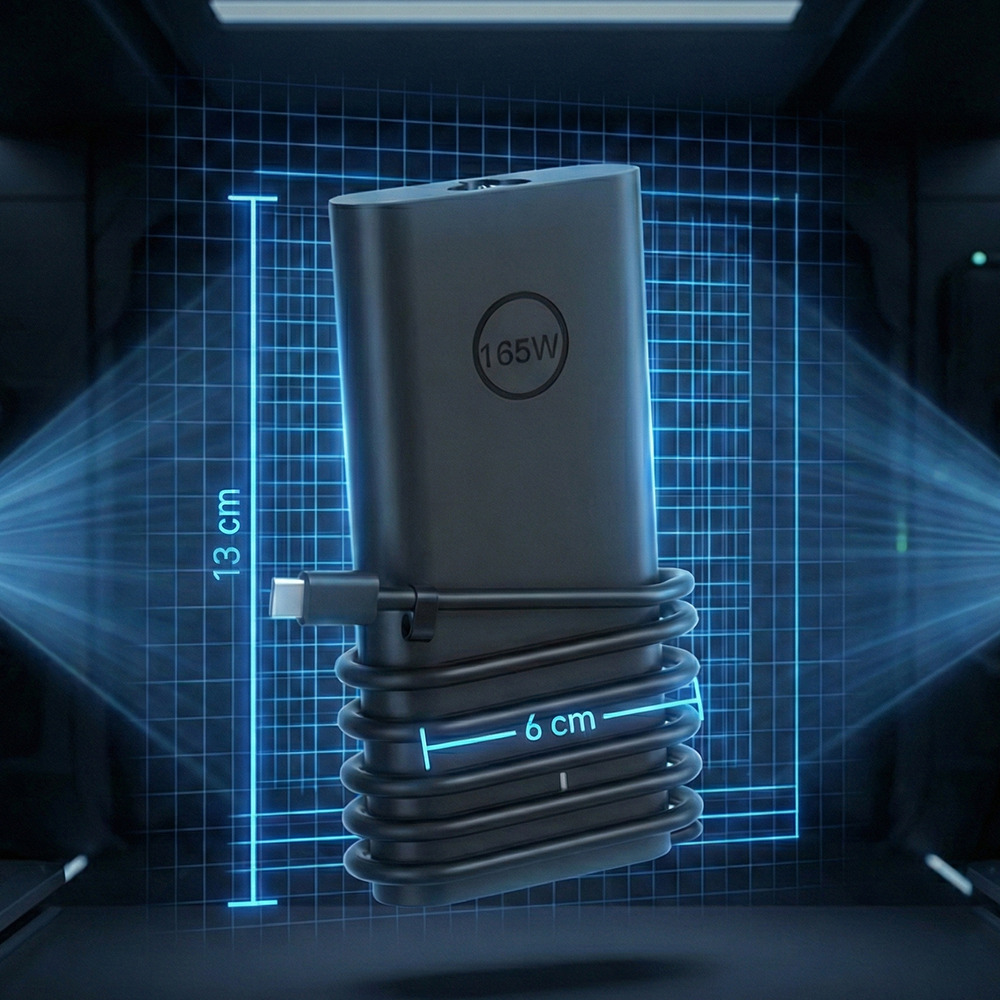 Adaptador de corriente original de Dell, diseñado para ofrecer una carga rápida, segura y estable a laptops de alto rendimiento con puerto USB-C Power Delivery.