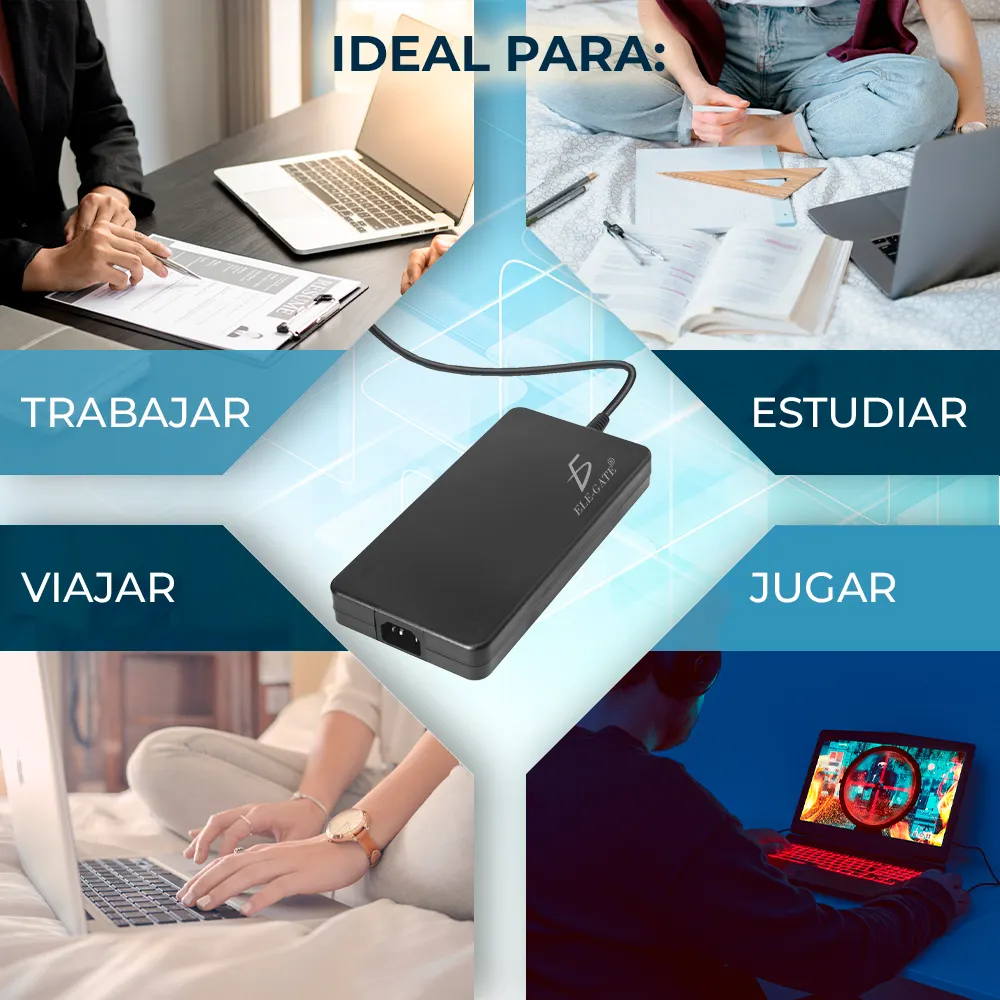 Especificaciones técnicas: Este cargador tiene una entrada de 100-240V, 50-60Hz y una salida de 19.5V, 12.3A, proporcionando una potencia total de 240W.