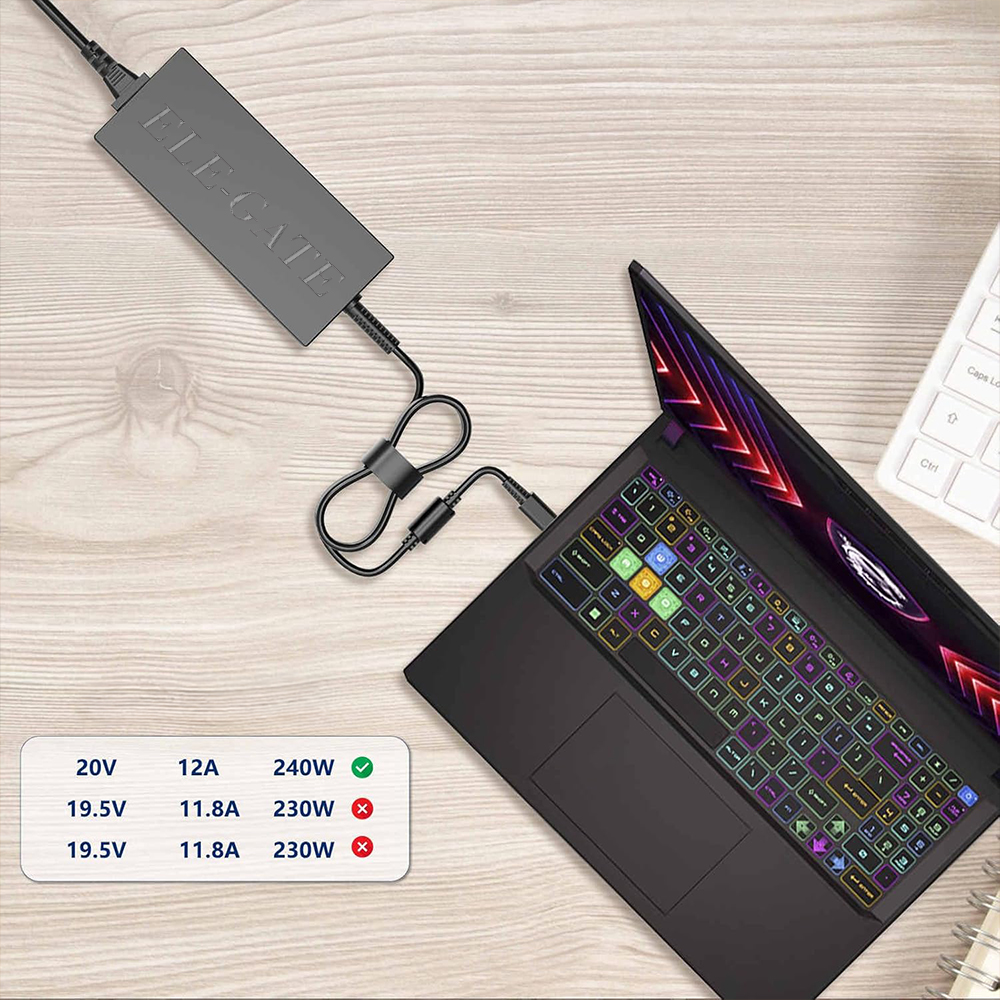 Salida estable de 20V ⎓ 12A (240W máx.), ideal para laptops MSI de alto desempeño y gaming. -